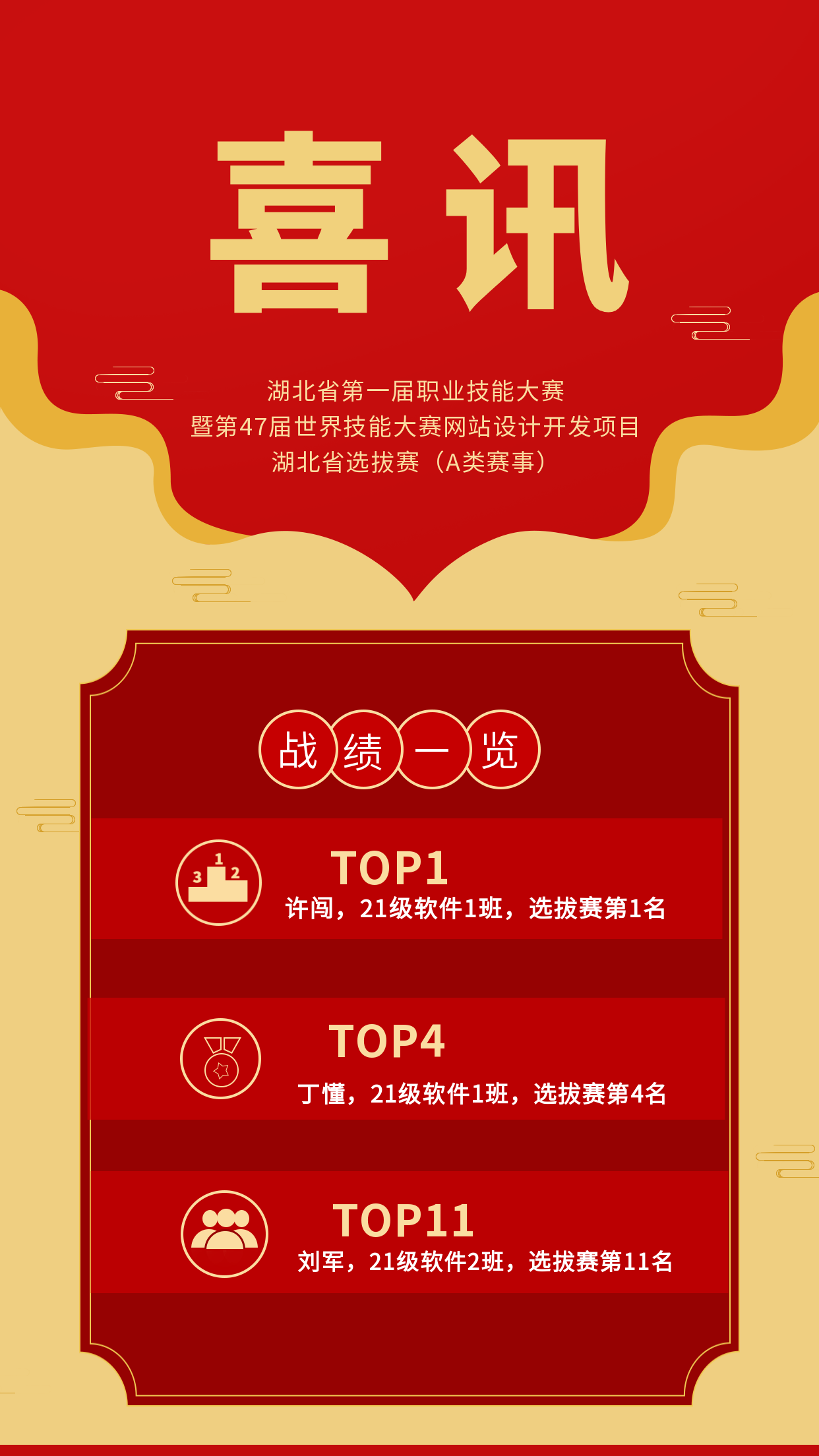 为认真贯彻落实习近平总书记关于技能人才工作重要指示批示精神,进一步弘扬工匠精神,深入推进技能强省建设,助力湖北高质量发展,湖北省第一届职业技能大赛暨第47届世界技能大赛【网站设计与开发项目】湖北省选拔赛,11月17日~18日A类赛事以线上比赛的方式展开角逐,亚洲精品久久午夜无码一区二区_成人一区二区在线播放_亚洲精品国产一区二区_欧美精品成人一区二区在线观看_国产在线看不卡一区二区_精品人妻无码一区二区三区在线_欧美精品成人一区二区在线观看_国产亚洲精品福利视频_国产亚洲欧美在线观看三区2021级三名选手经过两天的角逐,获得选拔赛总分第一,第四,第十一的好成绩。