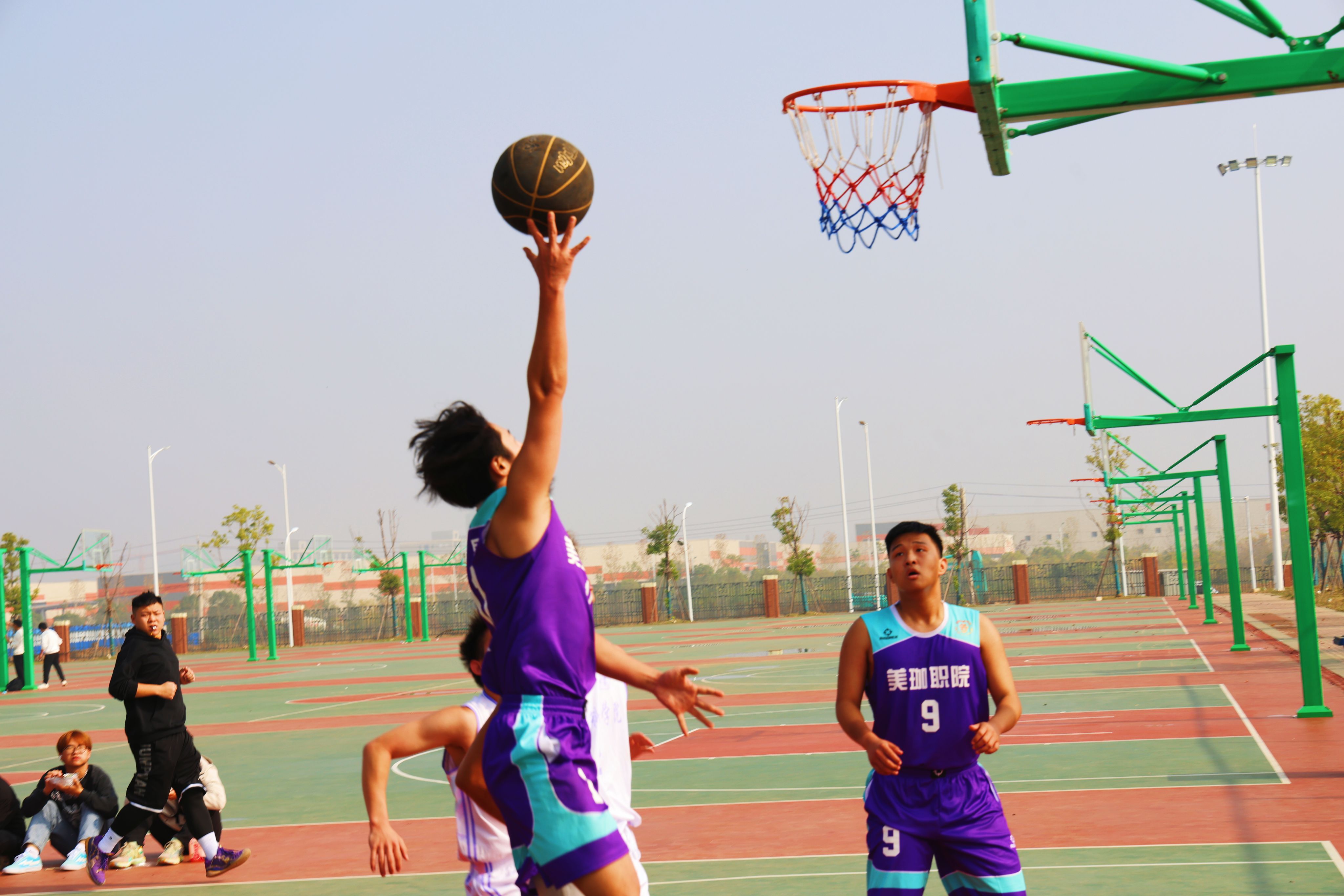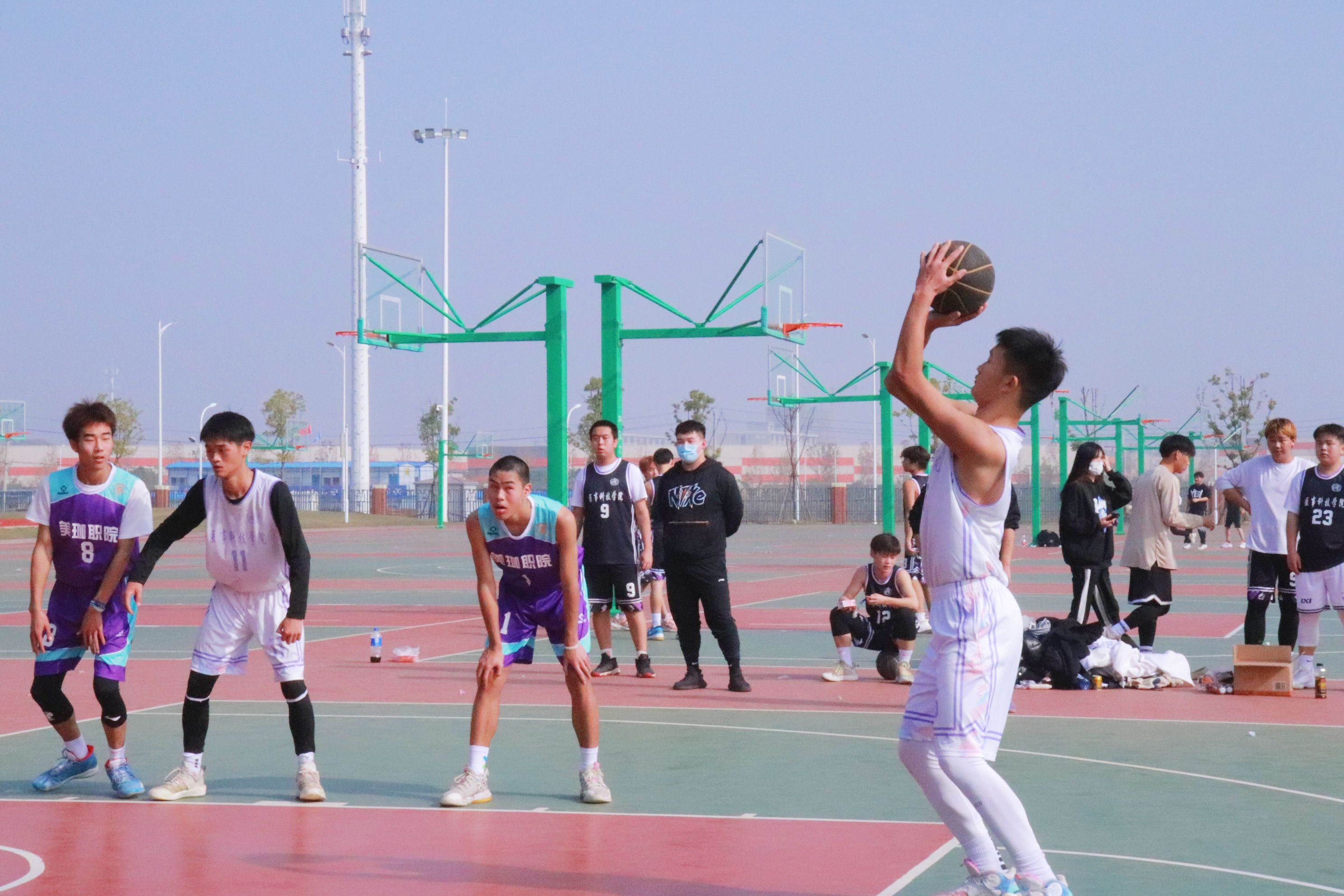 挥洒汗水!一方球场成为他们绽放光芒的舞台,赛出水平,赛出风采。运球、传球、投篮一气呵成。智能制造学院的同学在场下互相加油打气,而医事科技学院的辅导员们,也是第一时间把水送到了队员手中!老师对学生的关爱也让这样的冬季增添了一丝暖意!
