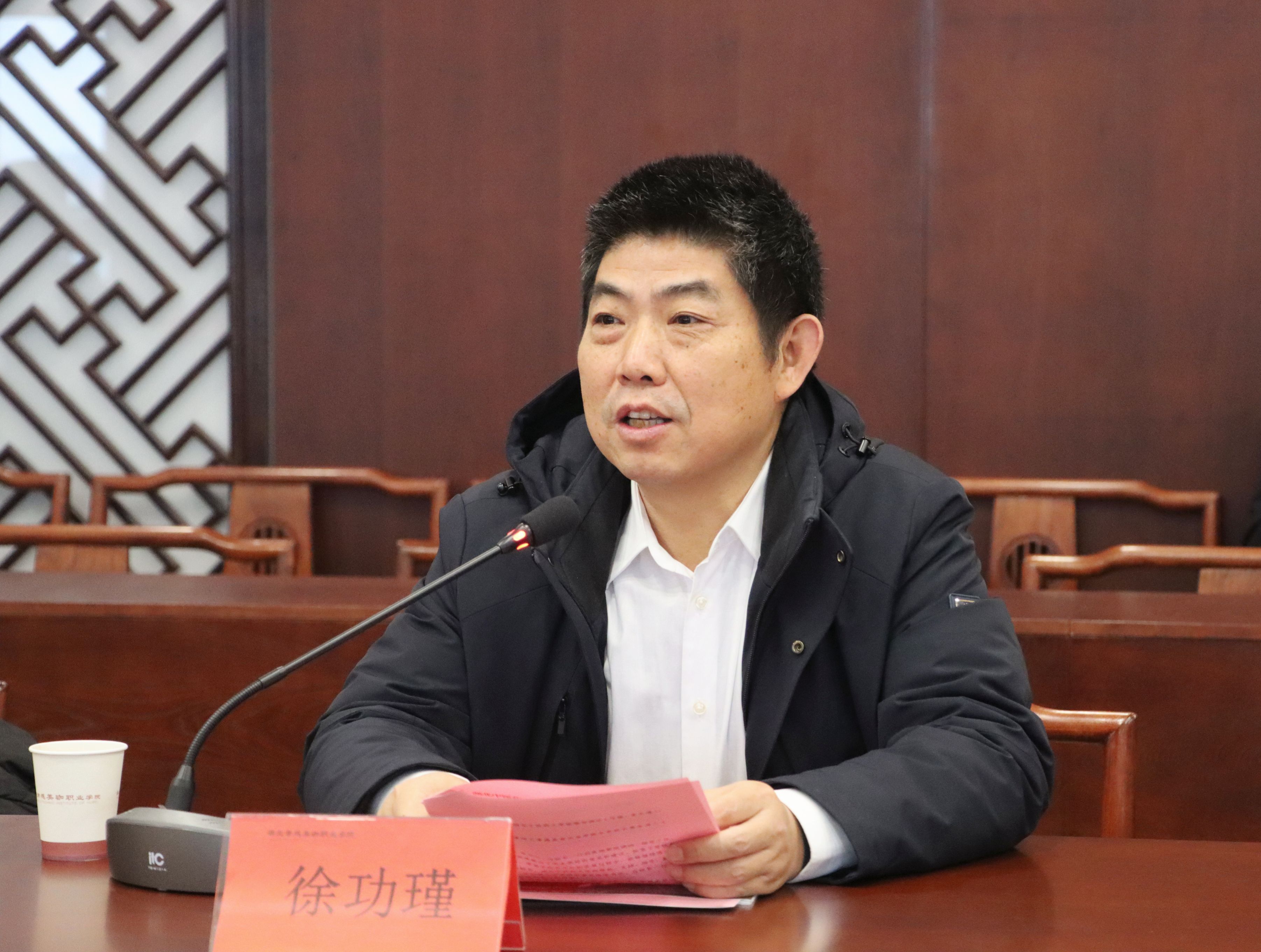 徐功瑾对湖北中医药大学副书记、副校长一行的到来表示热烈欢迎。他向客人介绍了学校建校的历程和办学发展思路。
