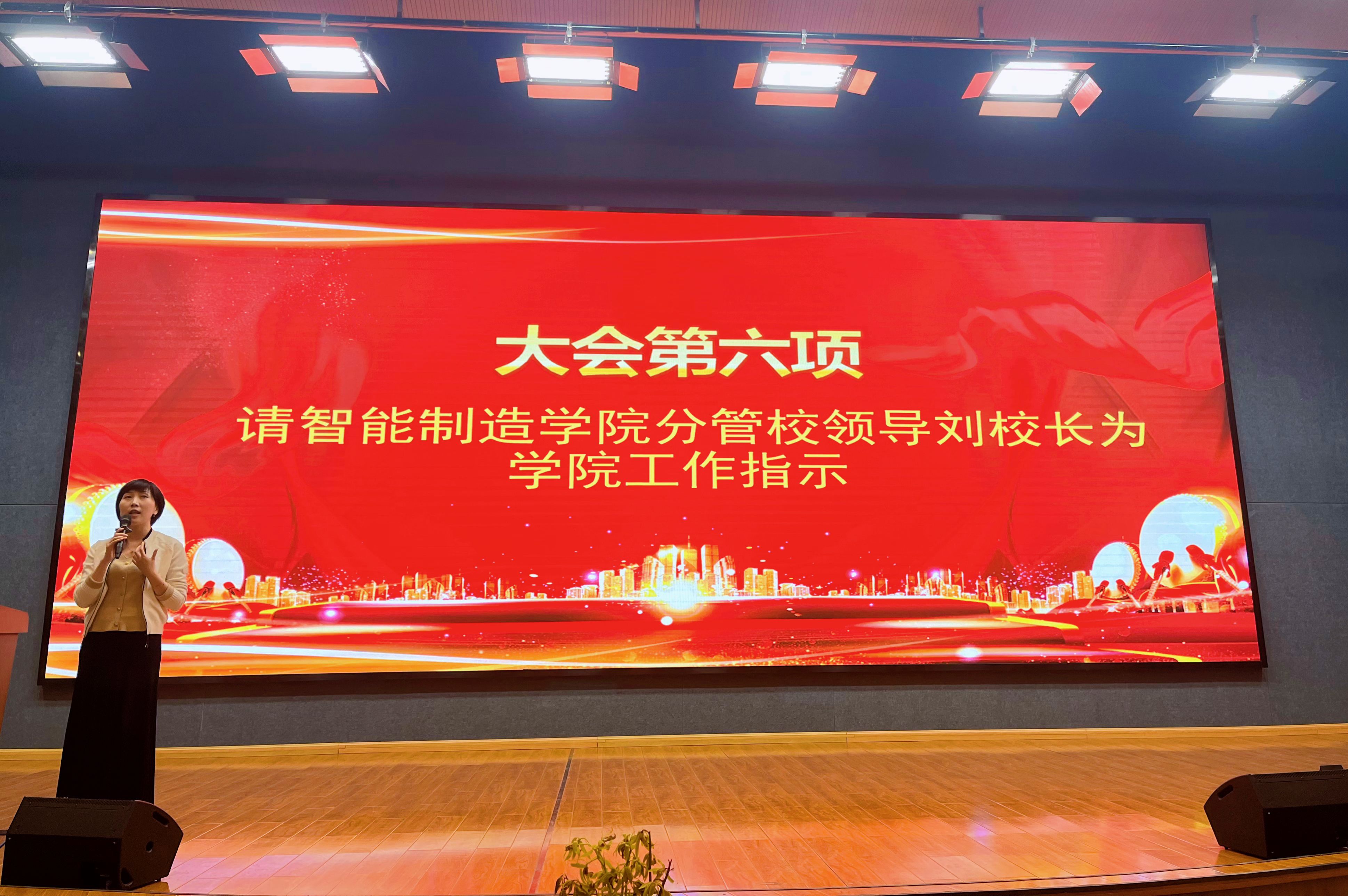 出席本次大会的校领导有:校长徐功瑾,副校长刘园园,校长助理付学江等。学工处处长汪庆、教务处副处长吴斌,智能制造学院全体教师参加了大会。