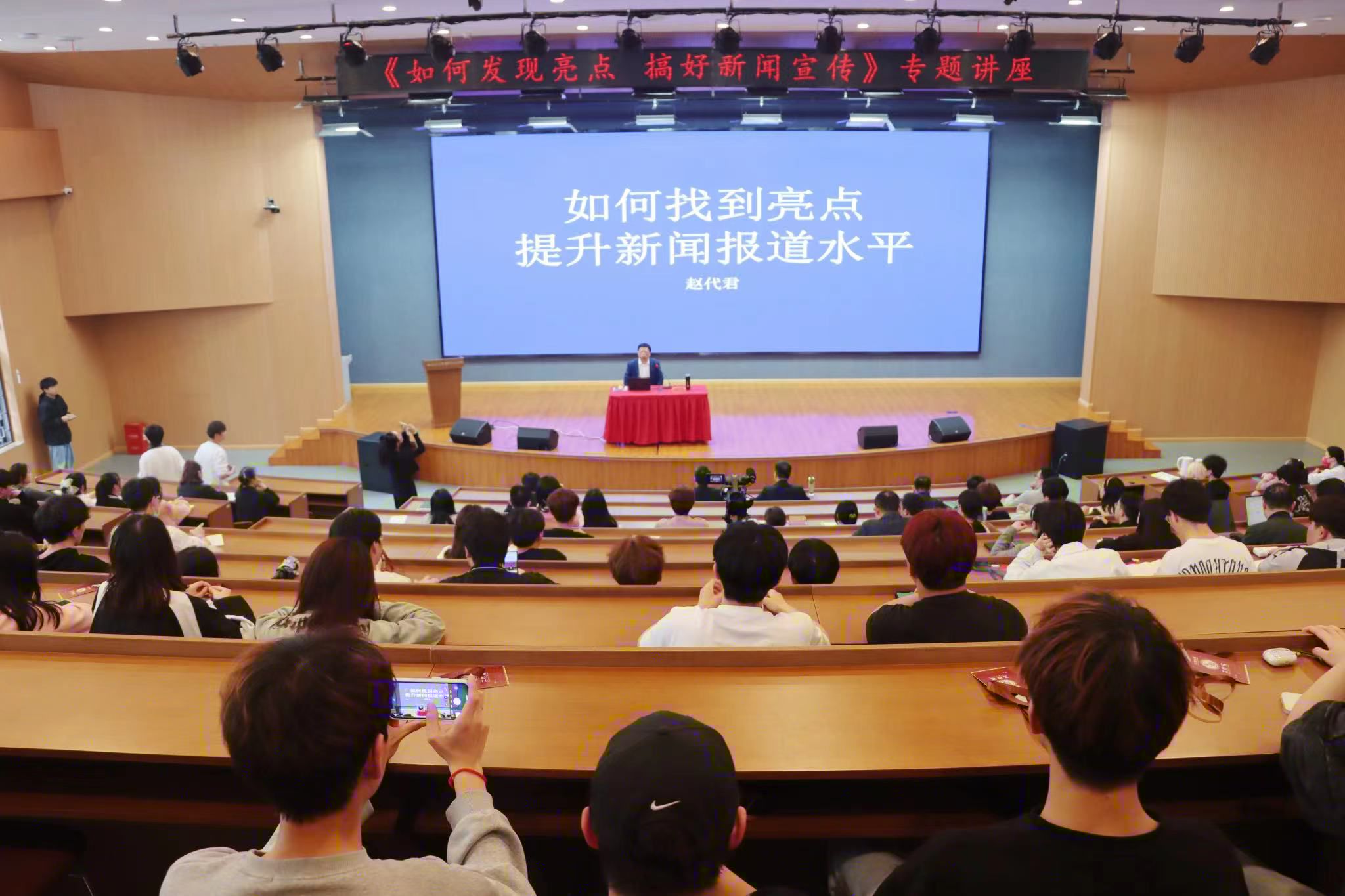 讲座伊始,赵代君部长便强调了宣传工作的重要性,随后分别从“我们为什么要搞宣传、什么是新闻、如何判断新闻价值、高校新闻的特点、高校新闻抓哪些、高校新闻从哪里发现、新闻采访注意事项、消息写作注意事项、怎样做好高校的新闻宣传”等方面,结合多个代表性新闻和新闻背后的故事,深入浅出地阐述了高校新闻发现与写作的方法。