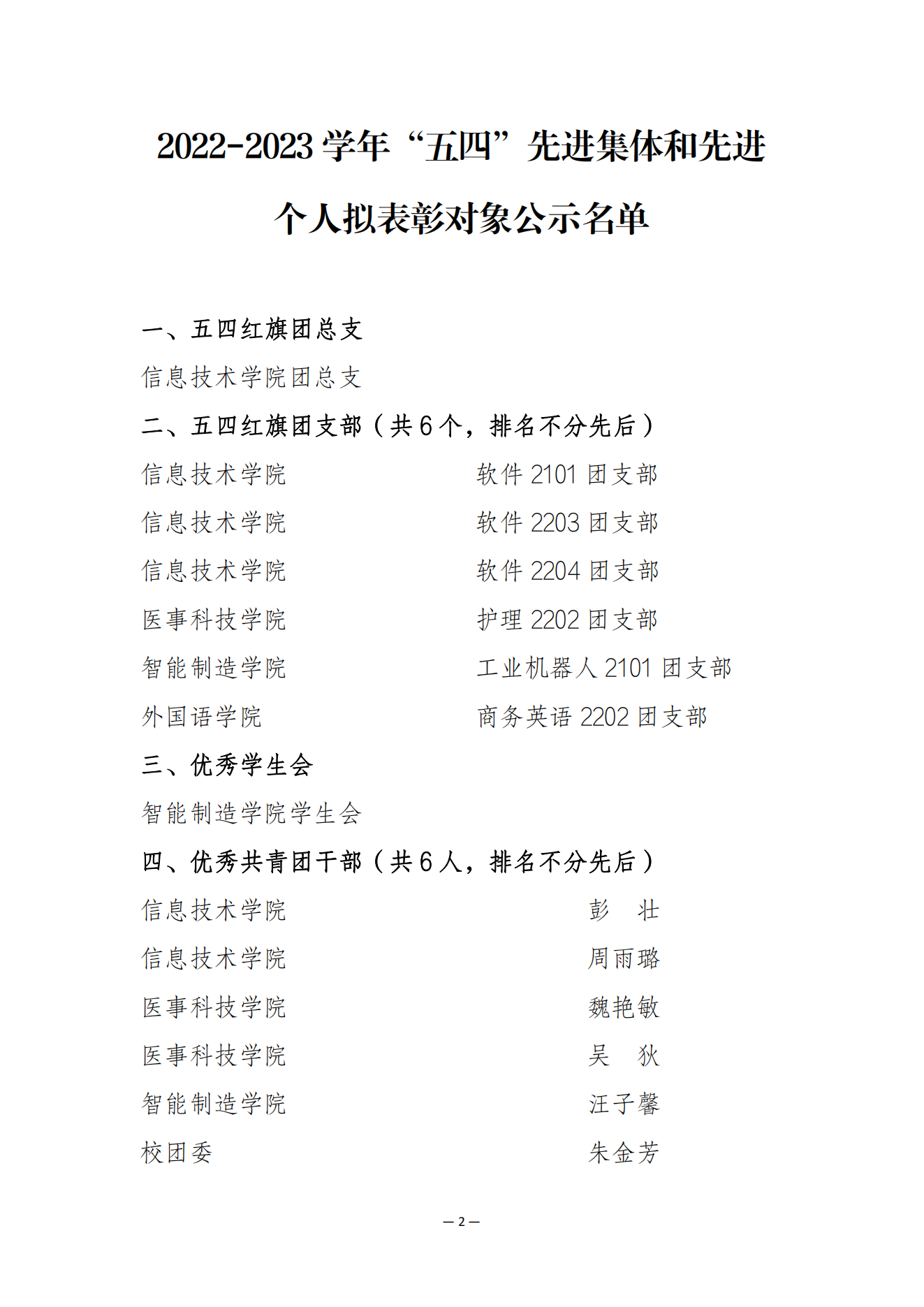 2022-2023 学年“五四”先进集体和先进 个人拟表彰对象公示