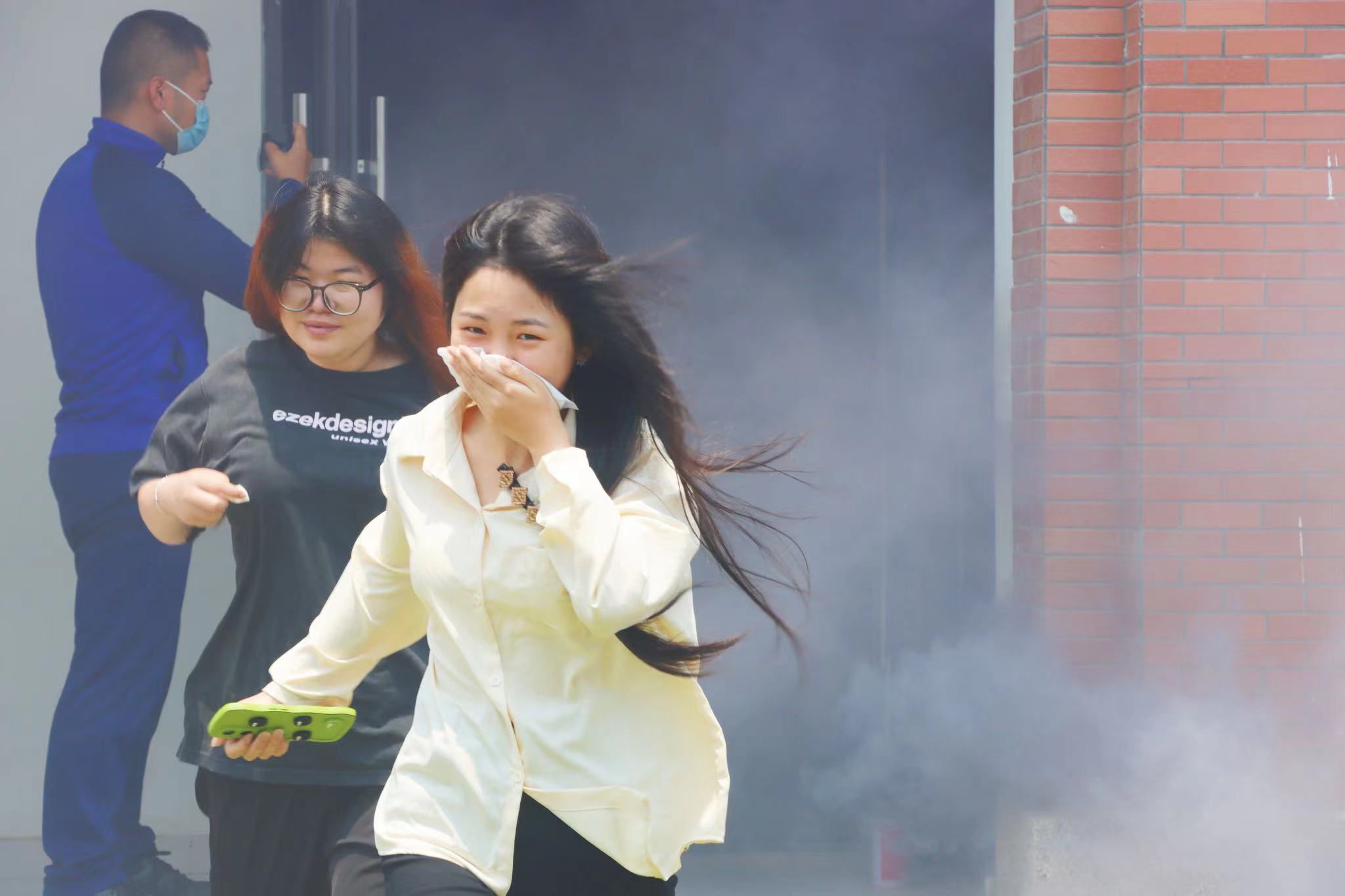 着火现场,辅导员、宿管员及消防救援人员组织学生疏散,学生们用湿毛巾捂口鼻,低头弯腰,按照疏散路线安全、快速、有序地撤离到集结地。保卫科拨打119火警电话并通知学校微型消防站前往救援,12时33分,凌云大道消防救援站出动2辆消防救援车赶到现场组织开展灭火救援及人员疏散。12时35分,经过消防救援指战员有序指挥,快速行动,3号公寓被困人员安全疏散至体育馆西侧集结点。消防疏散演练取得圆满成功。