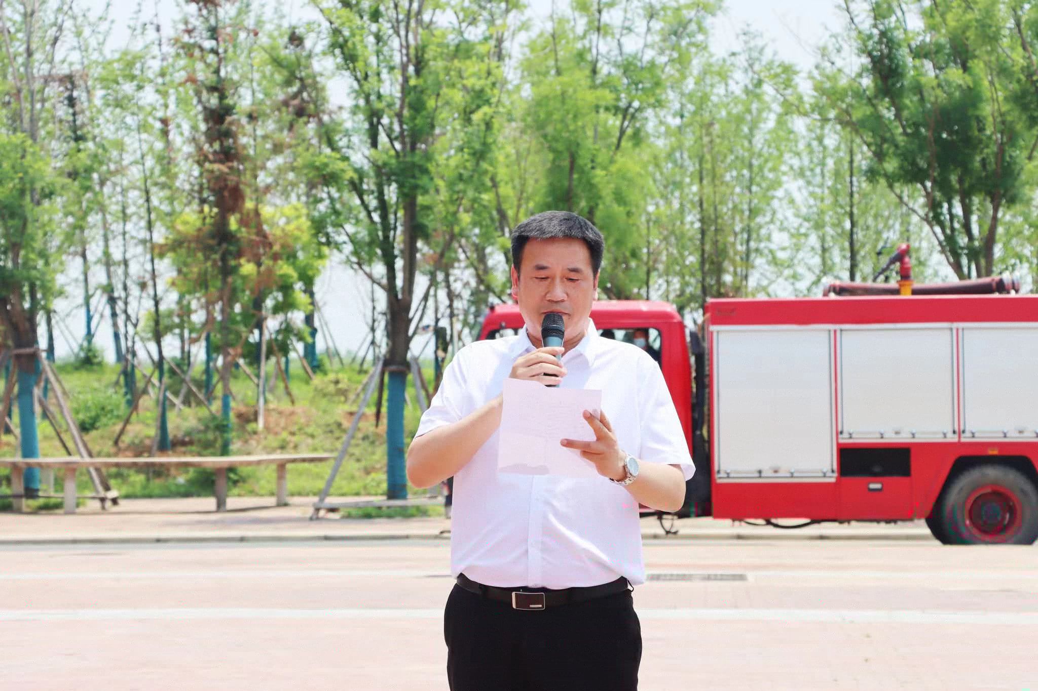 实操演练后,校长助理付学江作了总结讲话,他首先强调国家设立“防灾减灾日”,一方面顺应社会各界对中国防灾减灾关注诉求,另一方面提醒国民前事不忘、后事之师,更加重视防灾减灾,努力减少灾害损失。火灾及地震、洪水、滑坡等自然灾害随时可能发生在我们身边,了解灾害、了解风险、了解遇到灾害的逃生技巧是远离灾难并减轻伤害的有效途径。他希望学校各职能部门和全校师生以此次活动为契机,进一步提高安全意识,主动学习宣传安全知识,不断提高安全防范和应急避险能力。最后他代表学校对支持此次消防安全演练活动的各单位、各部门参训人员表示了感谢。
