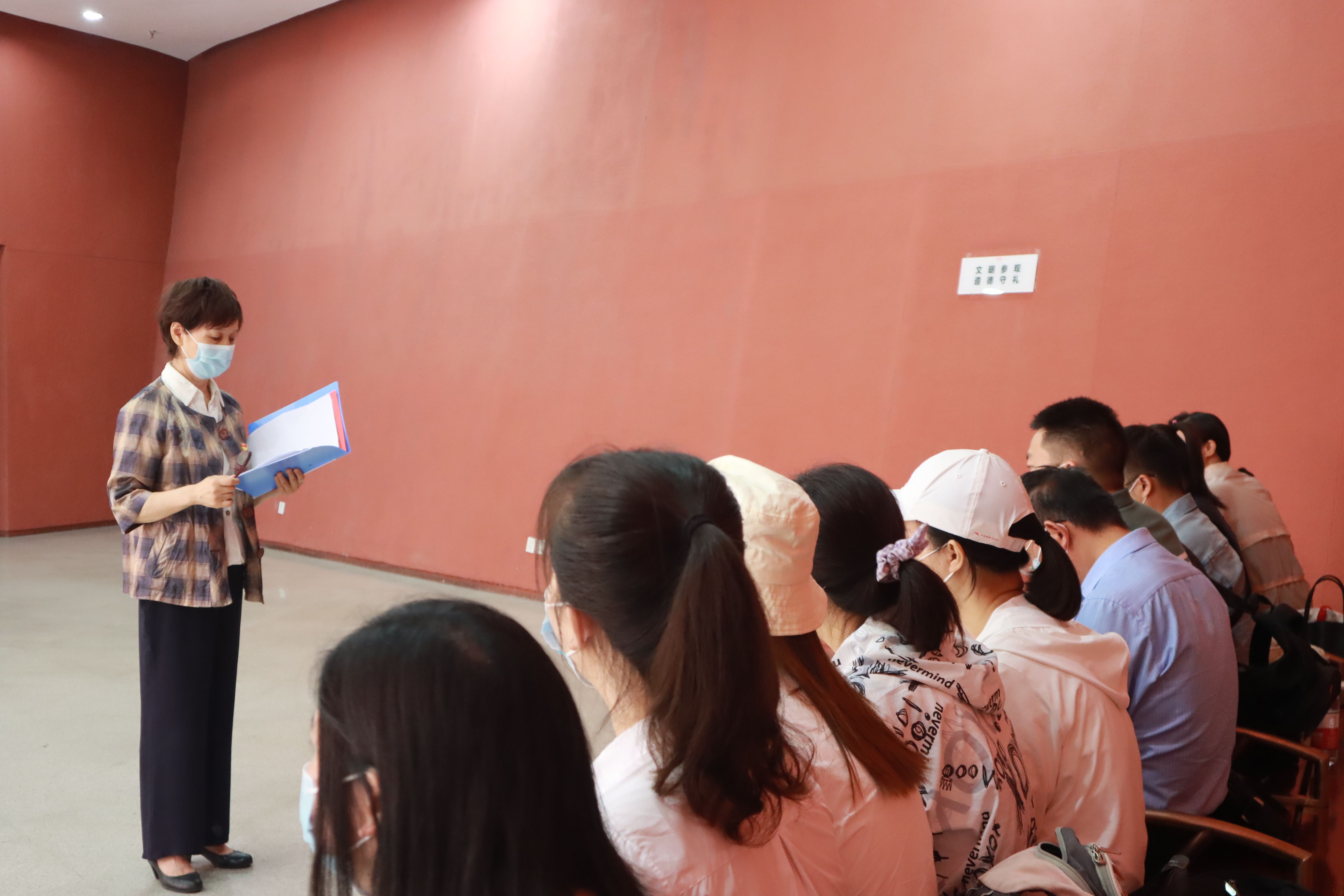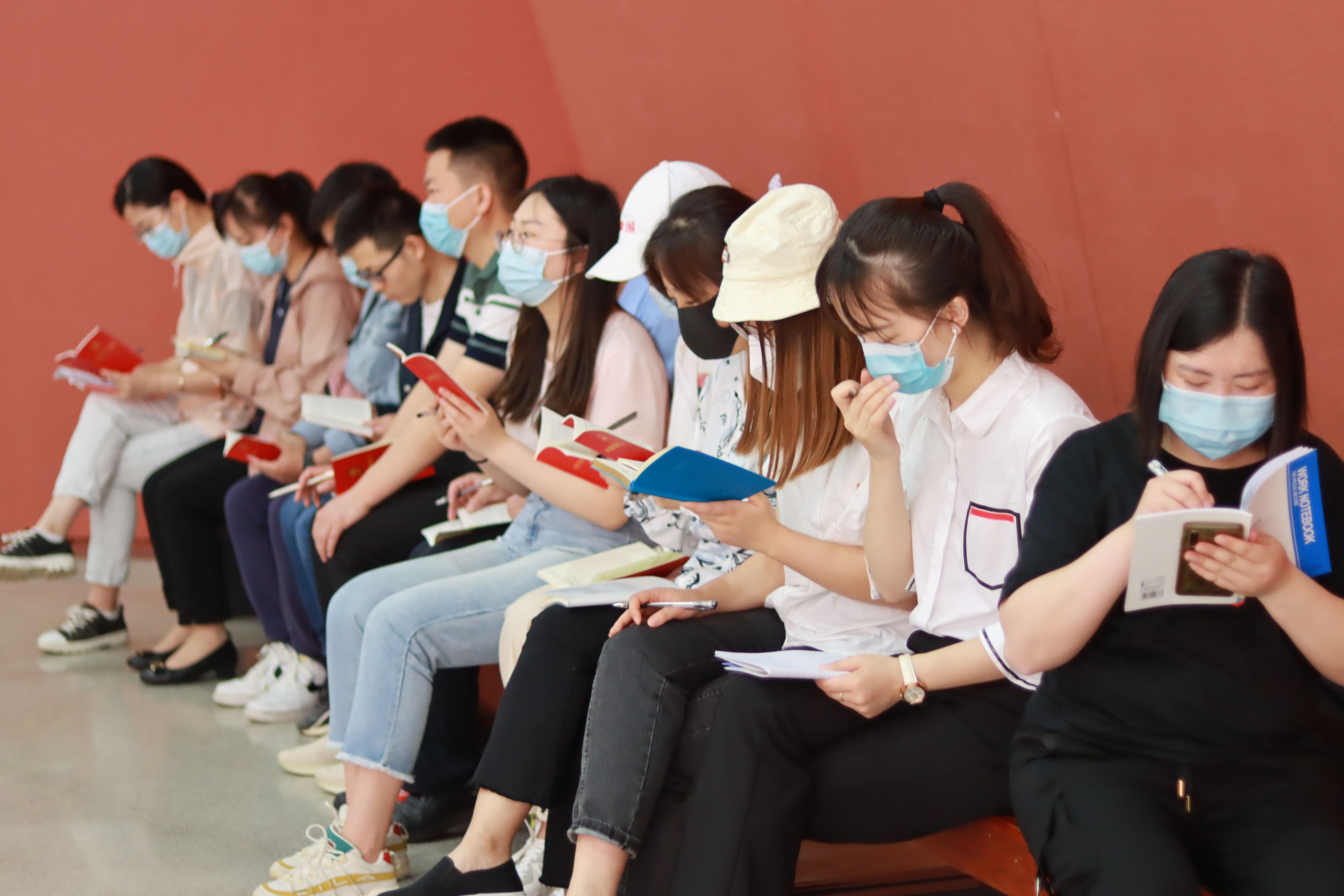 展厅参观结束后,党员和入党积极分子们在展馆外开展五月份理论学习活动。