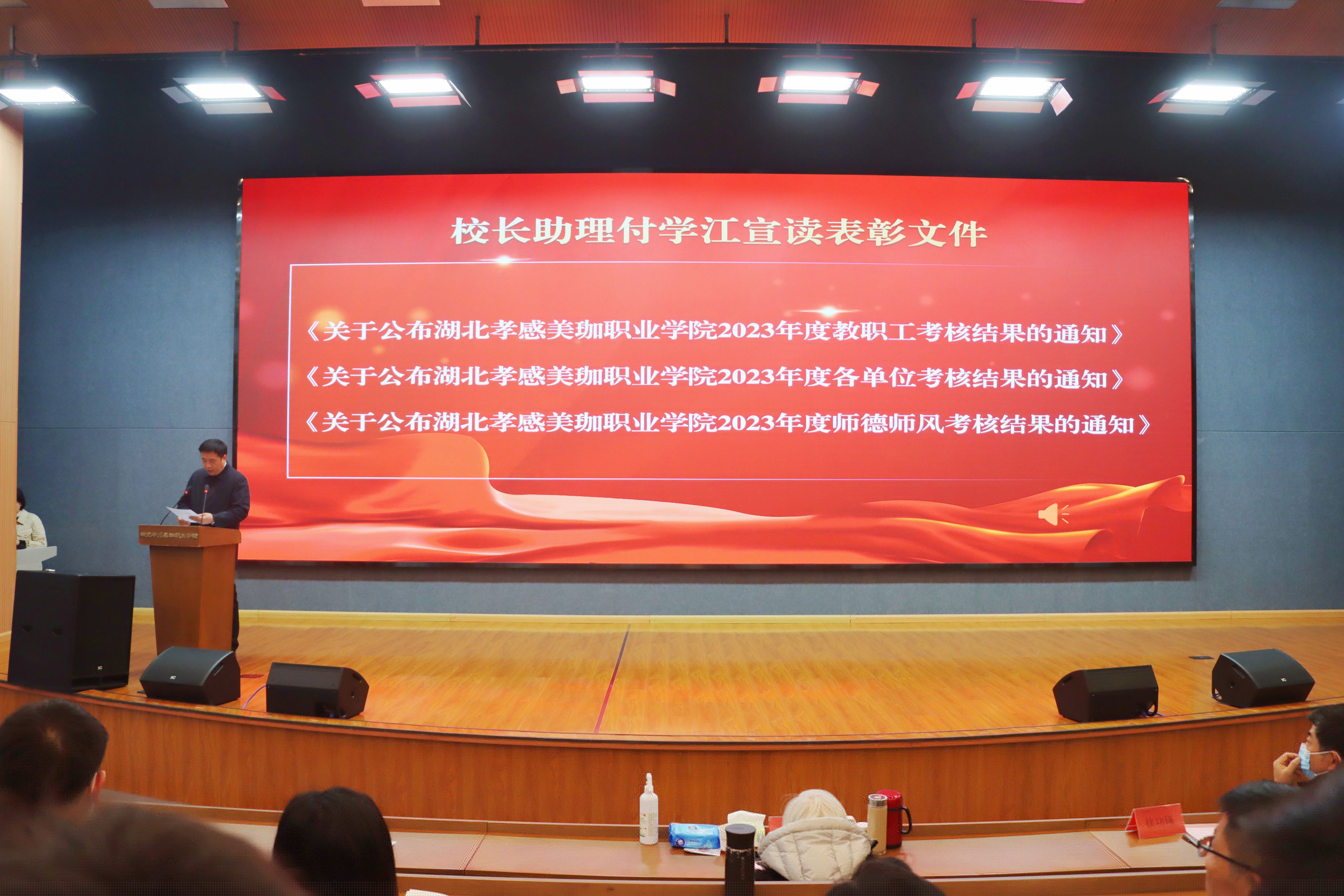 这次的会议,总结了2023年的成绩,明确分析了2024年的挑战,部署了2024年的工作任务。这是一个好的开端、好的起点。表明我们美珈职院正在走向正规化的方向。在2024年,大家一定会精诚团结,脚踏实地,劲往一处使,心往一处想。