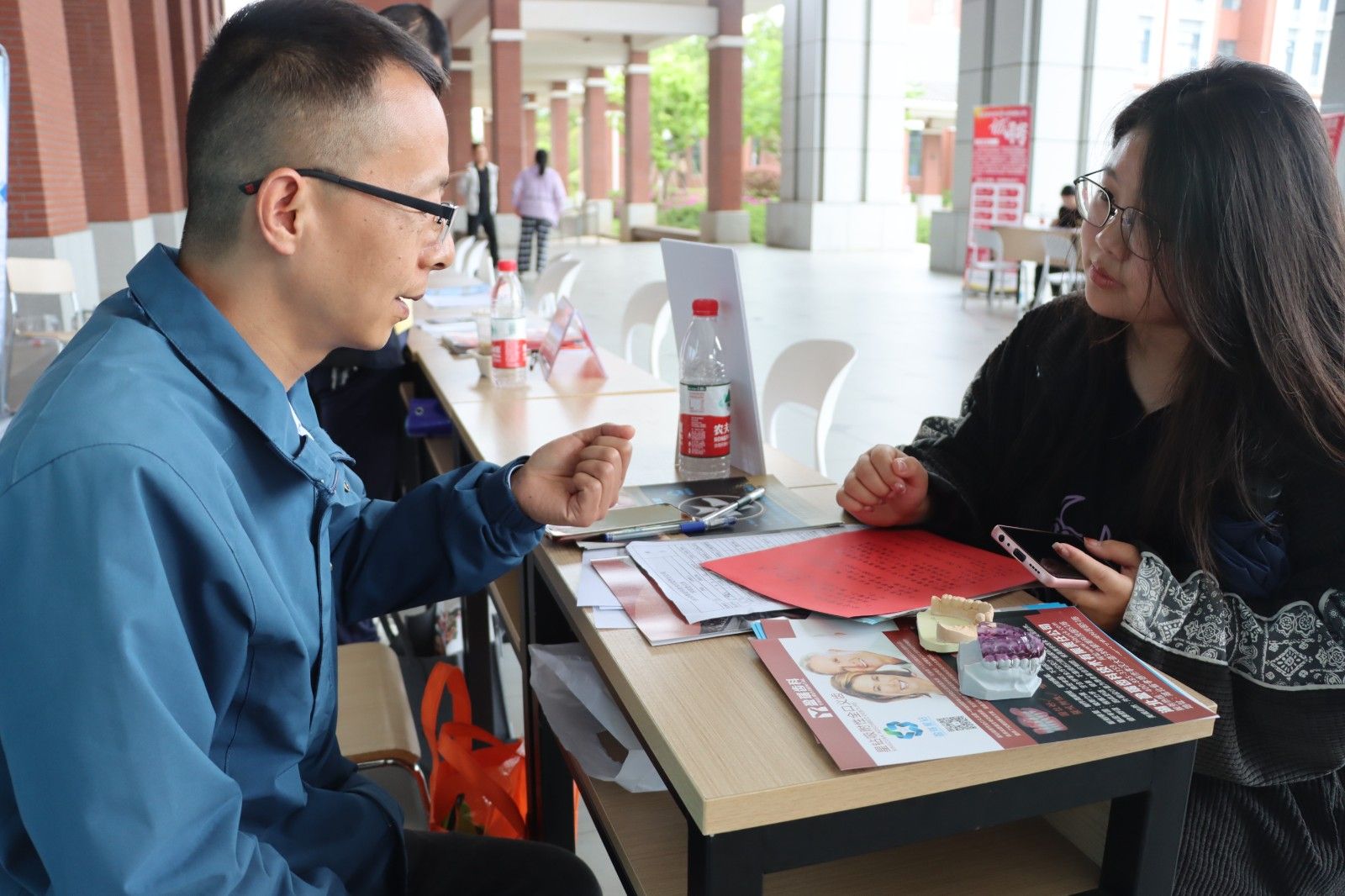 活动现场,孝感市中心医院、湖北盈瑞齿科技术有限责任公司、南昌市建设集团等20多家省内外企业招聘展位依次排开,带来护理、电子等专业的700个工作岗位,美珈学子满怀期待,各招聘展位前人头涌动,学子们手中拿着各类材料积极与招聘人员交流沟通,主动出击,详细了解企业用人需求和薪资待遇等关心内容,并根据自己的条件和专业寻找合适的工作岗位。招聘人员也耐心细致地为同学们介绍企业基本情况和职位需求等,详细地为同学们解答疑惑。