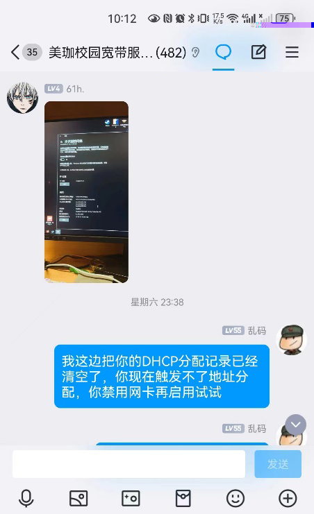 假期服务不打烊,网络运营保障作为信息技术中心的职责之一,以线上服务、线下排障等多种形式开展多样化、全方位的网络维护工作。“五一”放假期间,陈奇主任亲自带岗,线上解决同学电脑无法上网的问题,经过系统调试、硬件故障排除、网卡设备重新启动等操作后,协助同学恢复正常连上WiFi网络使用的需求,圆满完成假期网络故障维修任务。