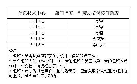 在假期也不放松,按照上级有关部门和学校工作具体安排,实行部门领导带班在岗制度,开展7*24小时专人值班值守工作,保障学校业务系统的正常运转;执行网络安全事件“零报告”制度,严格做好实时监测、定期巡检、风险及时上报等工作举措。