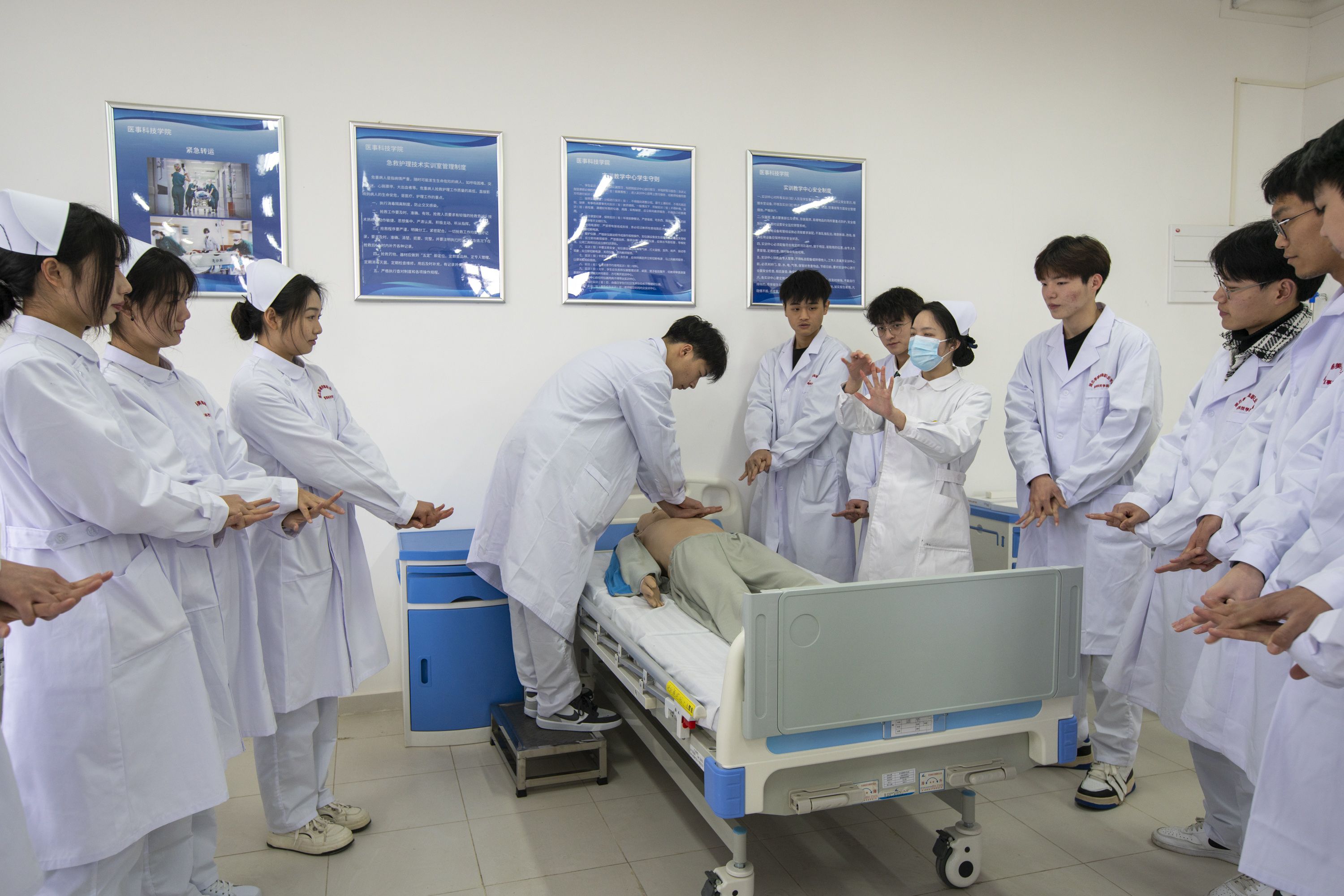我校医事科技学院有着全模拟现实环境的专业实训室94余间,有着国家级先进的仪器设备、仿真模型、专业实训器材等,让大家进入实训室就犹如身处医院工作环境之中。与武汉市中心医院、武汉市汉口医院、孝感市中心医院、武汉大学中南医院等多家大型医院签订了校企合作协议,采用“1+X等级证书模式”,使学生能够掌握全面技能,实现就业岗位多样化。在2024年全国护士执业资格考试中,我校一次性通过率为90%,远超全国平均水平。欢迎想就读医学类专业的学生积极报考我校护理和中医康复技术专业。选择医学之路,筑梦健康未来!