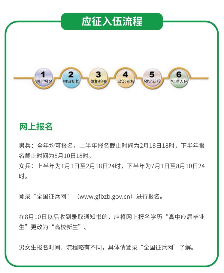 1.应征地:高校新生应当在户籍所在地参加应征;高校应届毕业生和在校生可在学校所在地参加应征,也可在入学前户籍所在地参加应征。