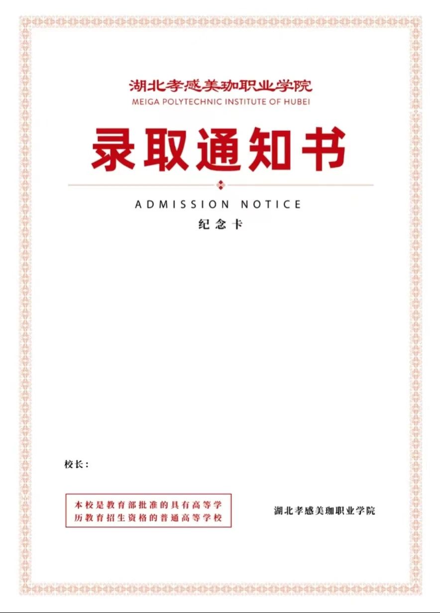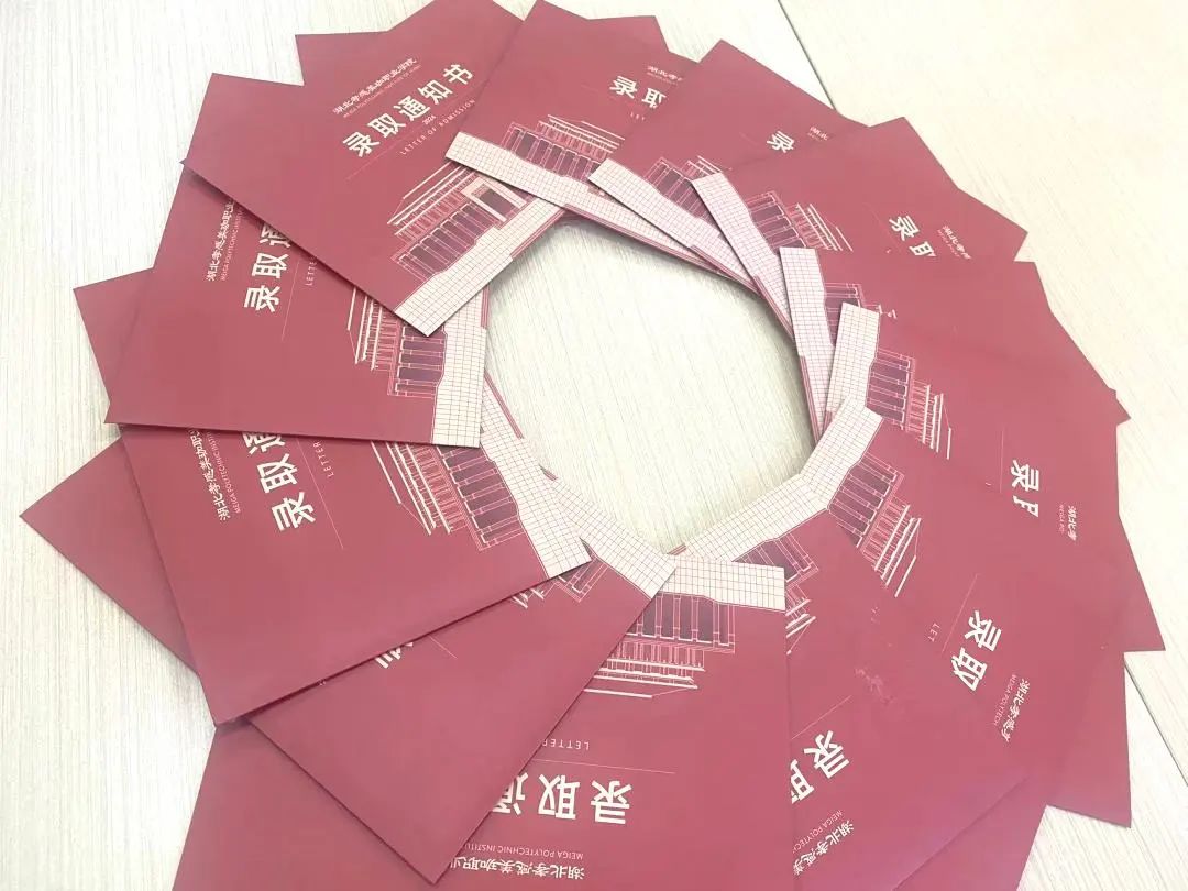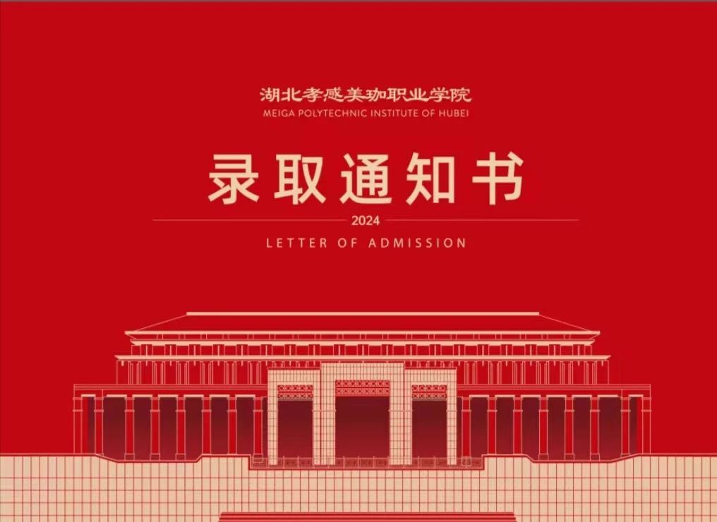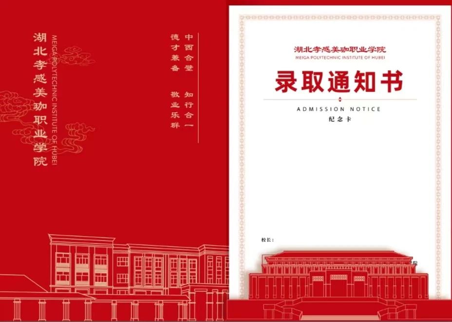 我校今年录取通知书保持往年的设计理念不变,以“美珈红”为主基调,采用异形裁剪和烫金工艺,融合了我校标志性建筑物—图书馆、行政楼、教学楼的线条图以及学校的办学理念、招生宣传语等,总体表达了对2024级新生就读我校的热烈欢迎以及传达出朝气蓬勃、活力四射、积极向上的希冀!