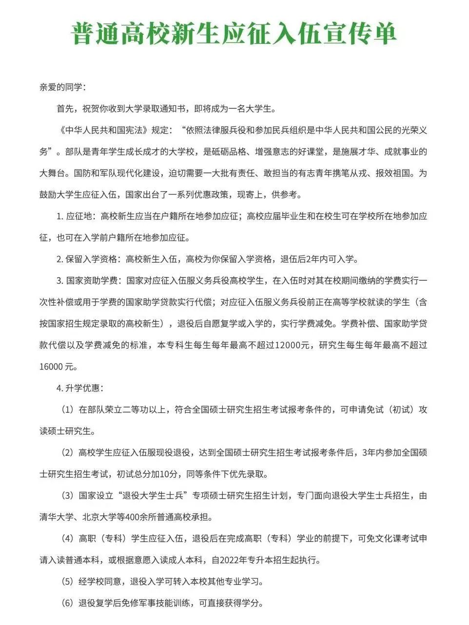 7、普通高校新生应征入伍宣传单