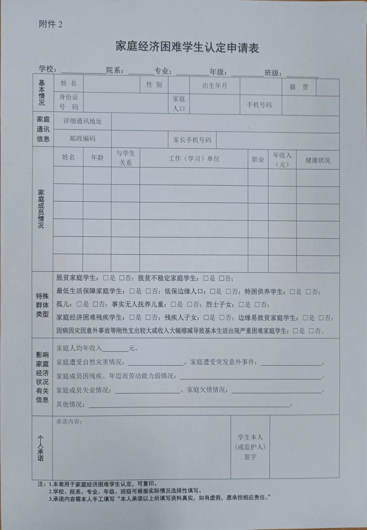 5、家庭经济困难学生认定申请表