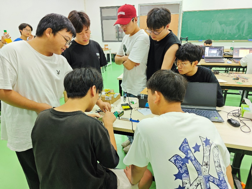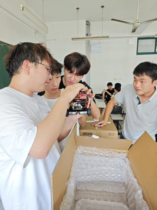 在这四天三夜的比赛中,学生们昼夜不停地进行设计、调试和改进。他们凭借扎实的专业知识和卓越的创新能力,克服了比赛中的重重困难,最终完成了从方案设计到硬件搭建、程序编写的全过程。比赛过程中,学生们常常顾不上休息,彻夜奋战,只为在短时间内实现技术上的突破。比赛期间老师们负责学生饮食节约学生时间,力争把每一秒都用在比赛中,在他们的不懈努力和顽强拼搏下为学院赢得了这份沉甸甸的荣誉。