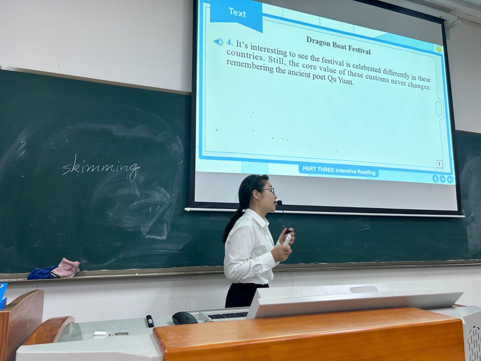 外国语学院郑英老师以《大学英语》之节日篇章为媒,激发学生兴趣,培养跨文化视角。她引导学生预测、略读、精读,提升阅读力,同时增进对世界文化多样性的理解。