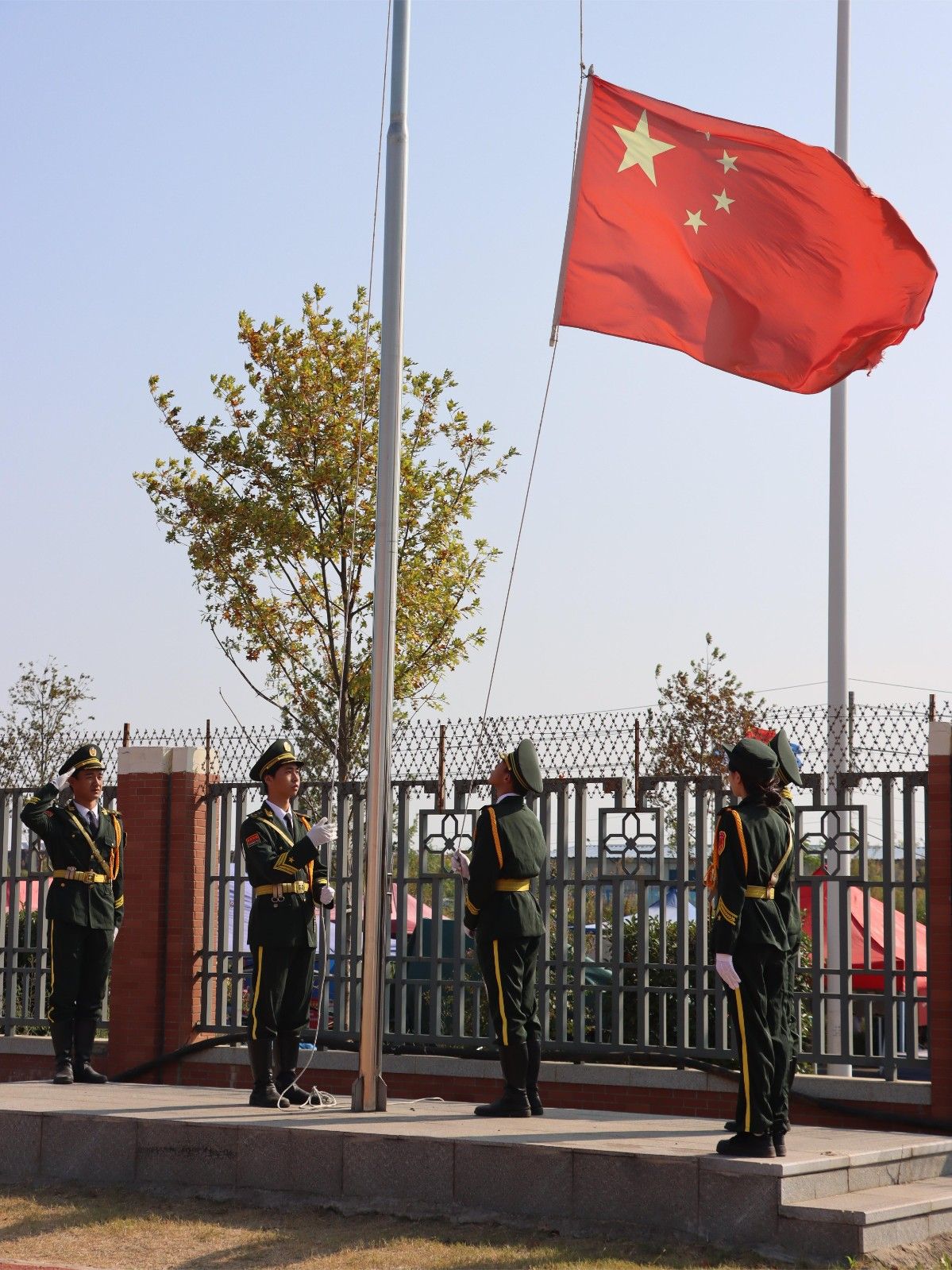 典礼上,首先进行了—— 升国旗仪式