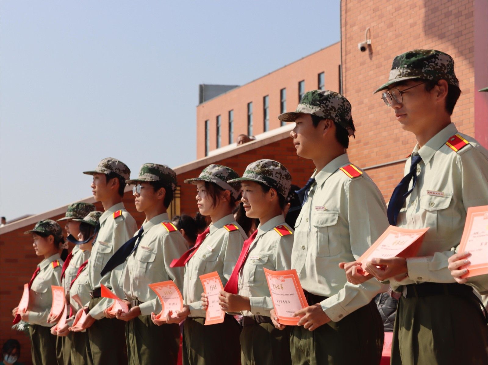 表彰时刻,荣耀加冕。在意犹未尽的氛围里,副校长徐国洪宣读军训表彰文件。获得“军训优秀营”、“军训优秀连队”、“军训优秀教官”、“军训优秀政工干部”、“军训优秀标兵”、“军训优秀学员”、“新生奖学金”代表,依次上台领奖。