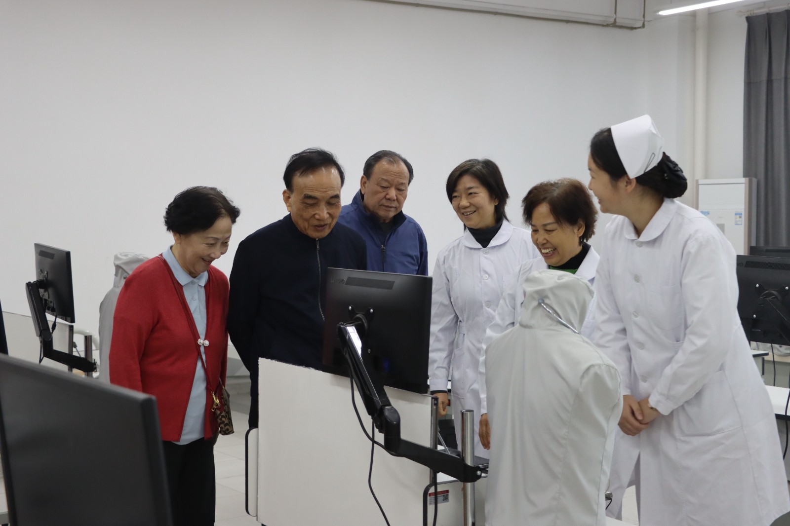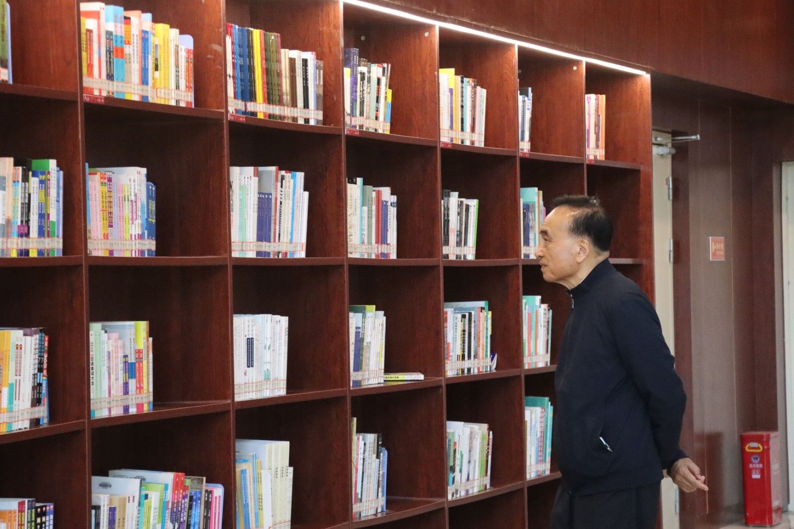 参观完学生宿舍后,程康彦一行先后参观了我校智能制造学院实训楼、行政楼、医事科技学院实训楼、图书馆,并在行政楼一楼拍照留念。在图书馆大厅,他连连称赞:“这是我见到的最好的图书馆!”
