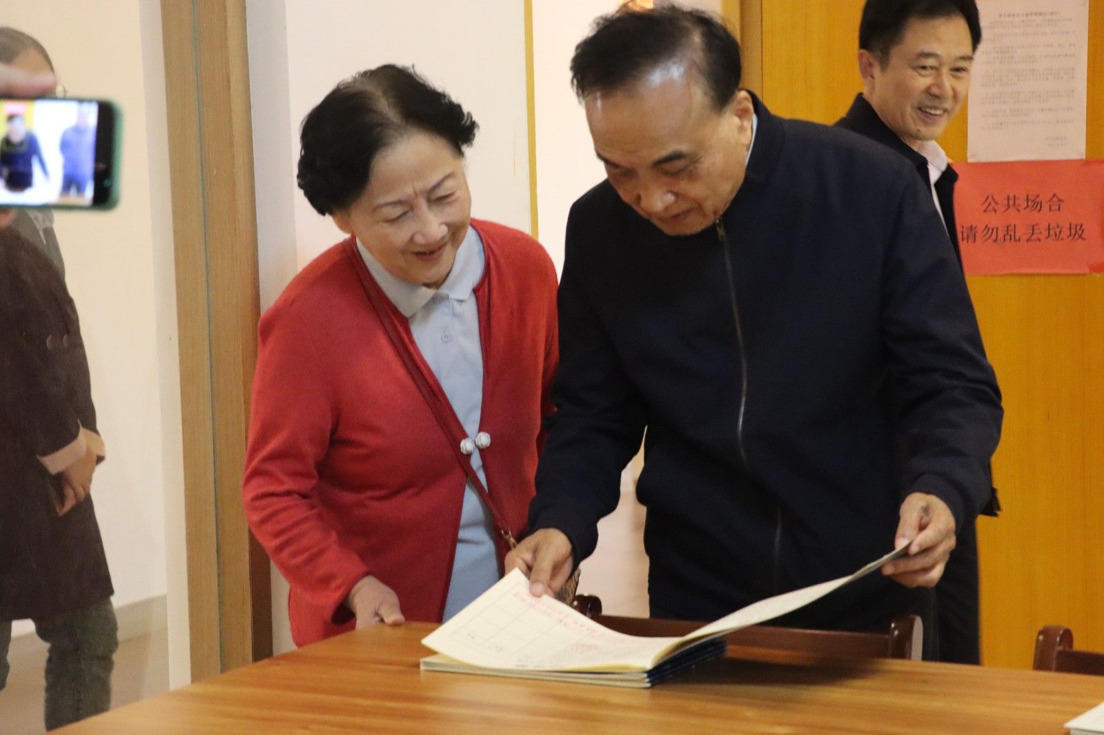 随后,程康彦一行仔细观看了学生写的《功过格》。程康彦充满激情敲着桌子说:“日行一善好啊!二十多年前,我在武汉公安局上班就提倡他们,每天做一件好事,积攒下来”。