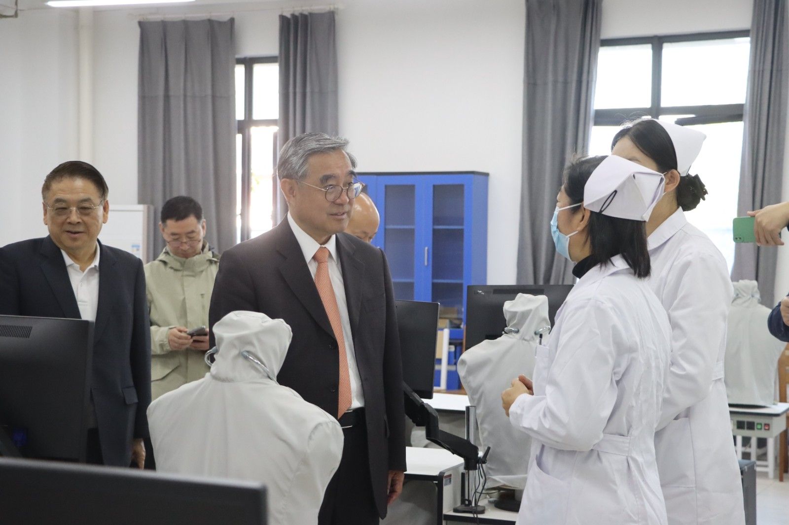 图片说明:吴成典跟医事科技学院师生热情交流。