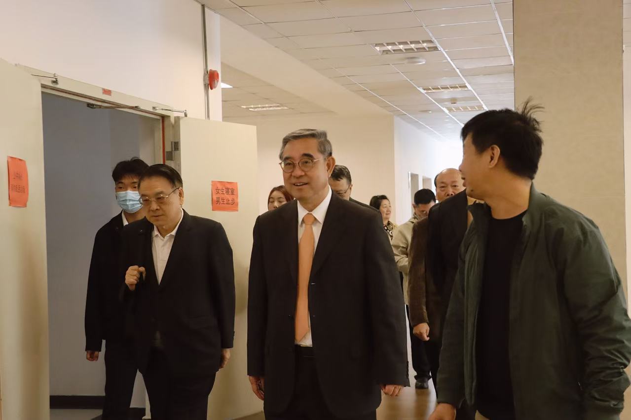 在举行座谈会之前,来访的领导在学校领导的陪同下,先后参观了学生宿舍楼、实训楼、图书馆、行政楼,对学校中西合璧、各具特色的建筑、完备的校园设施、优美的校园环境赞赏有加。