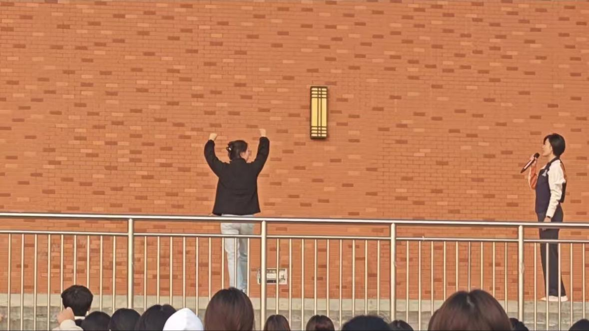 在这场“一起向未来”的旅途中,辅导员们同样扮演了不可或缺的角色。医事科技学院辅导员吴佩瑶、李馨不仅在平时训练的组织、动员、协调上给予了全力支持,更在精神上不断鼓舞着每一位参与者。没有音响就借音响;看不出效果就协调无人机;学不会就自己学了自己下去教;看不出学生学习效果就创建啦啦操学习通课程,上传教学视频并发布啦啦操练习作业……辅导员们一直坚守战线,每天陪同教练团的老师和学生们一起训练,一路同行,成为了学生们的心理支柱。每当遇到挫折或压力,总能看到他们温暖的身影,用话语和行动为队员们加油打气。