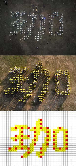 除了在场上表演的学生们,还有一群特别的队伍,取名为“特别小分队”,小分队的成员各司其职,有的负责无人机的拍摄,有的负责协助老师打点位,有的负责照看其他同学的物品,有的为大家分发花球,有的为大家搬运物资……虽然最后没有站在表演的方阵中,但也为团队贡献了自己的力量。