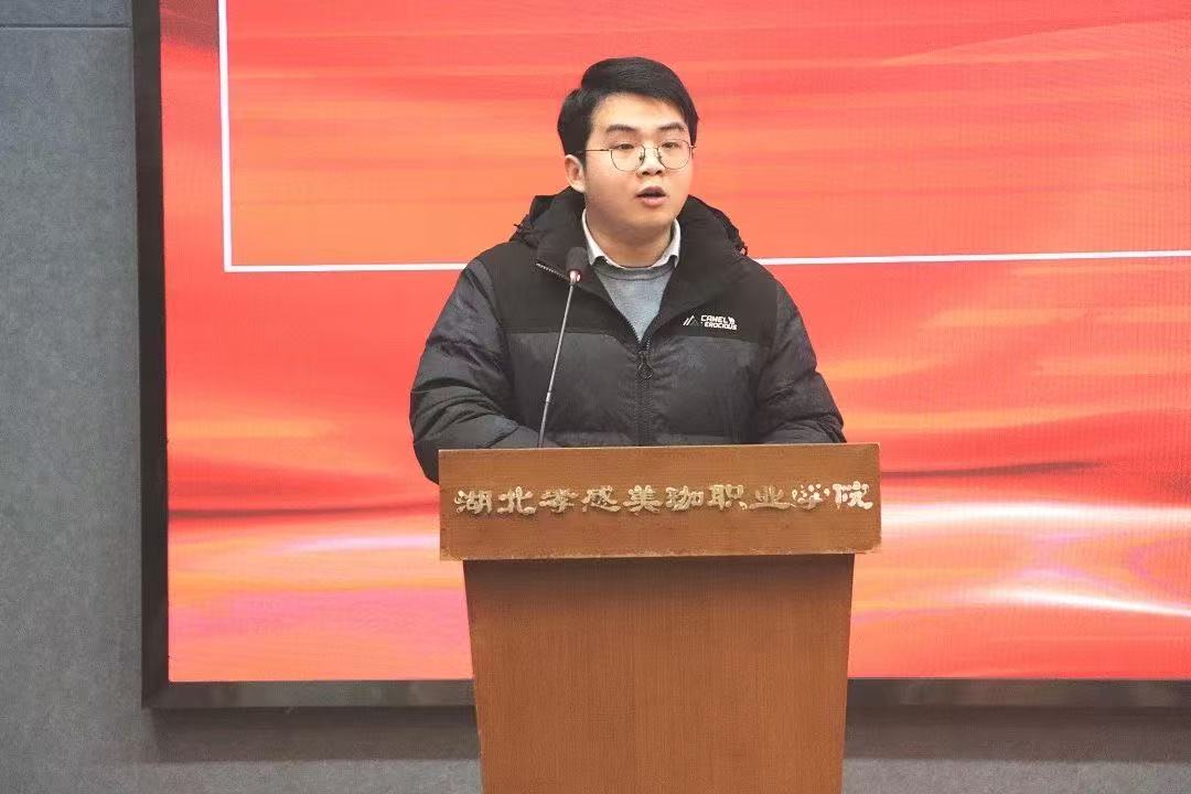 智能制造学院叶高呈作为优秀教师代表上台发言。他说:“今天能作为教职工代表发言,我倍感荣幸。这份殊荣,既源于学校‘以赛促教、德技并重’的培养理念,更离不开团队的支持与信任。”他分享了三点体会:一、感恩:在沃土中成长 ;二、坚守:用汗水浇筑荣光;三、传承:与学校共奋进 。他动情地说:“2024 年‘湖北工匠杯’智能制造应用技术大赛的夺冠,既是我职业生涯的转折点, 更是学校产教融合成果的见证。”“在美珈的两年成长历程中,最让我受益的是独具特色的教师培养体系。“多轮磨课”的严苛考核、“以老带新”的师徒制度,正是这种“精雕细琢”的培养模式,让我们新教师迅速成长为能站住讲台、站稳赛场的双师型教师。这种“传帮带”的薪火相传,正是美珈精神的生动写照。