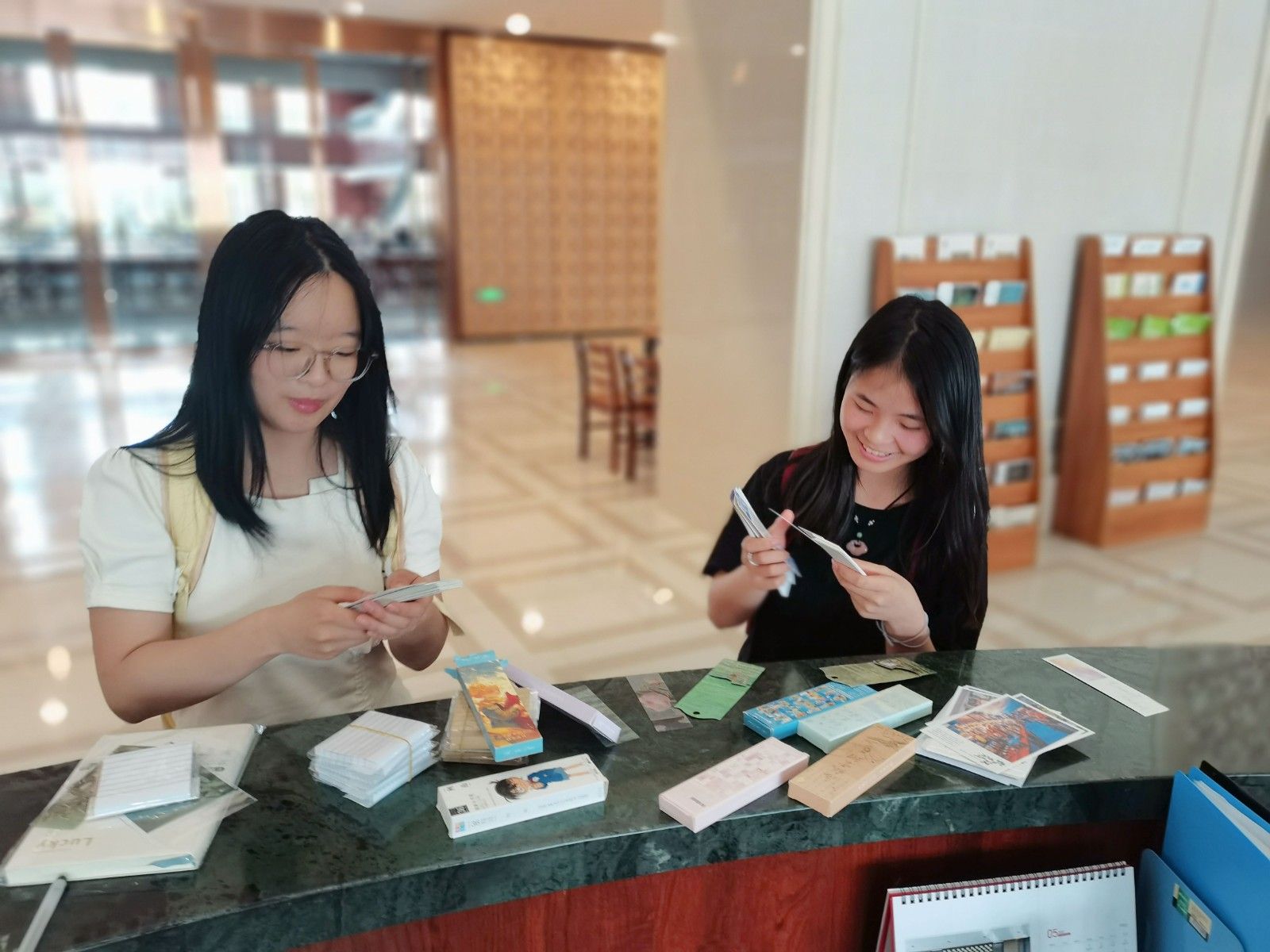 在团队任务中,同学们充分发挥智慧,利用图书馆电脑检索系统,输入书名或条码号查找索书号,分工合作,合理规划寻找路线。有的队员负责检索图书信息,有的专注排查索书号找书,还有的专门研究图书馆平面图寻找最优路径。团队成员间默契配合,通过手机静音震动传递信息,既保持了图书馆的安静环境,又提高了任务效率。