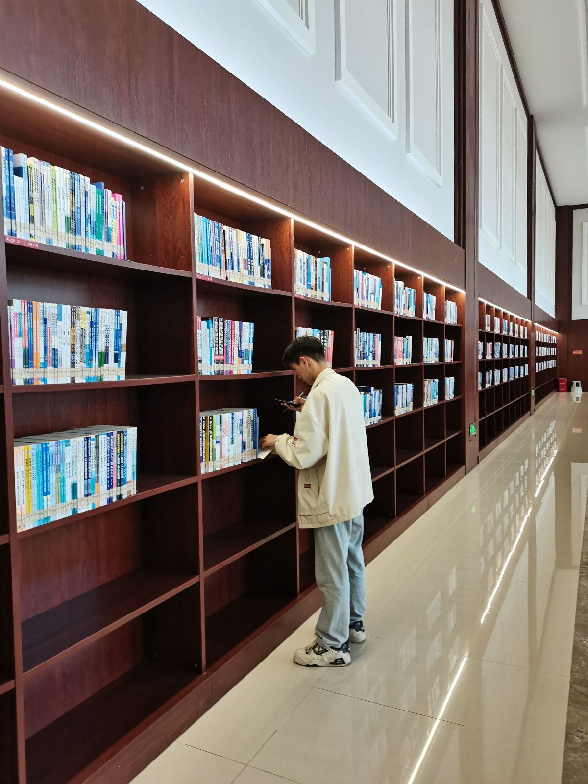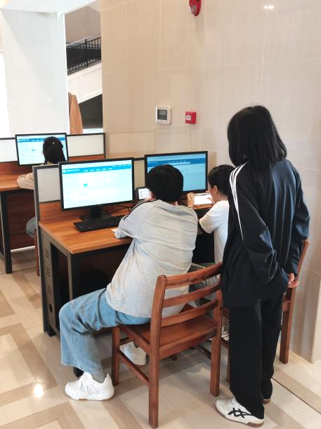 在紧张刺激的个人计时任务中,同学们化身“寻书达人”,各显神通地穿梭于书架之间。有的同学像侦探般仔细研究“寻宝地图”,快速锁定目标区域;有的则化身“人肉导航仪”,凭借对楼层布局的熟悉直奔目标书架。随着计时器的滴答声,现场既紧张又充满期待。每当有人成功找到目标书籍,都会轻快地跑到工作人员面前,虽然压低了声音说“完成”,但脸上掩不住的兴奋和眼中的光彩,让整个活动充满了青春活力。