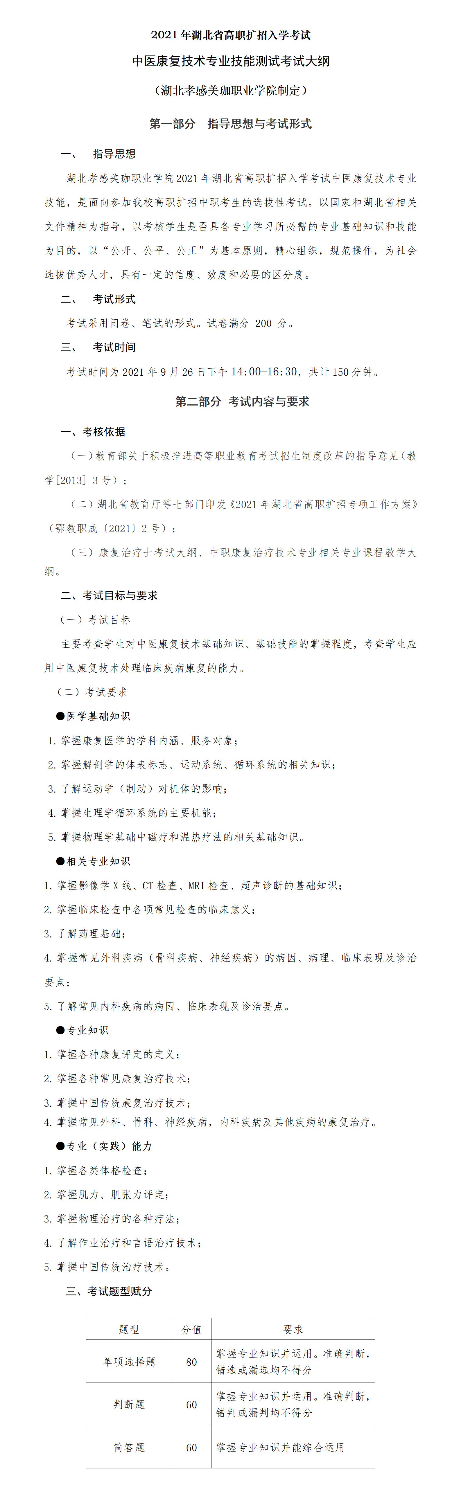 2021年湖北省高职扩招考试(各专业职业技能考试大纲及样卷)