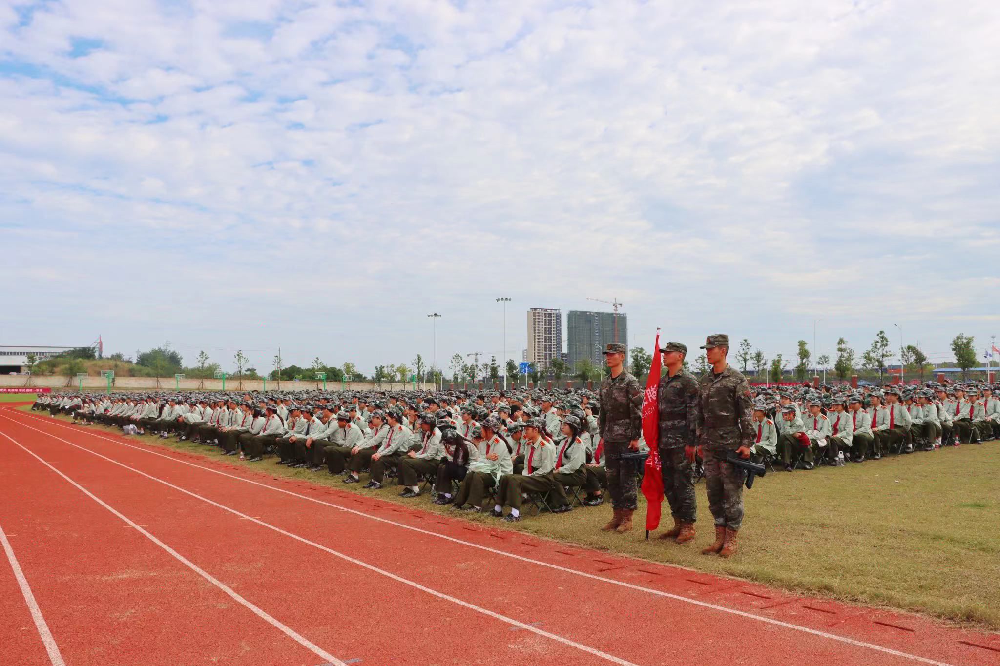 校长助理付学江代表学校对即将参加军训的同学提出了几点要求:要端正态度,明确军训目的;要刻苦训练,学习军人作风;一切行动听指挥;要持之以恒,巩固军训成果;努力把军训收获转化为源源不绝的学习动力。“光荣的桂冠从来都是用荆棘编织成的”希望军训过后,全体新生能以健康的体魄、饱满的精神、顽强的意志品质,投入到火热的学习生活中,将军训的成果巩固为个人内在的素养,成为享用终身的财富!