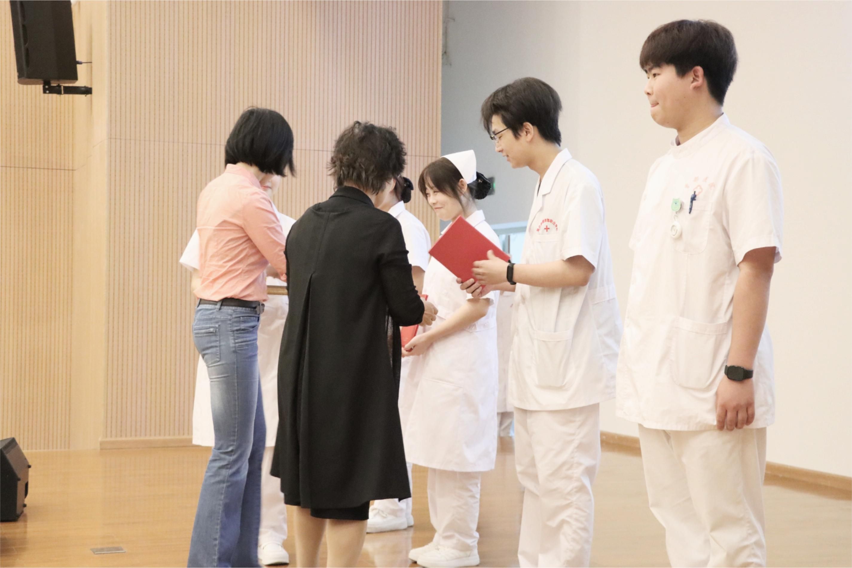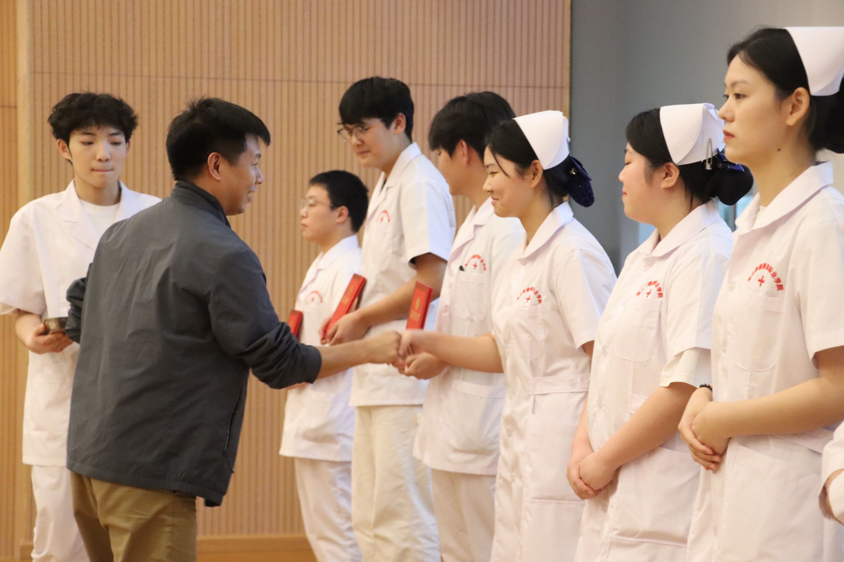 学生代表李蕾结合自己在学校里的学习生活,表达了作为一名护理专业的学子,未来将以更加饱满的热情和更加精湛的技能,为患者的健康和幸福贡献自己的力量,将以高尚的医德和精湛的医术,赢得患者的信任和尊重,为医学事业的发展贡献自己的力量!