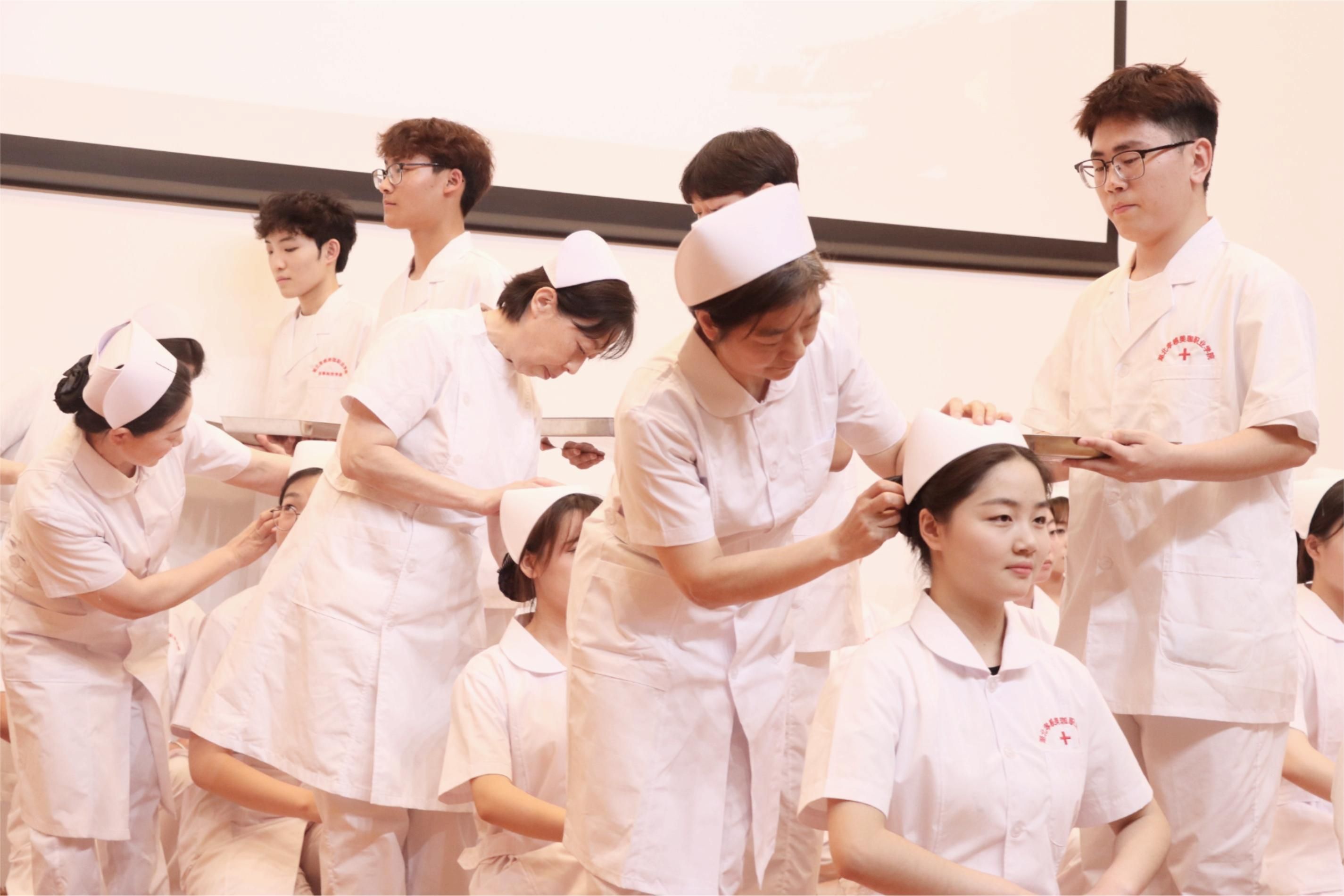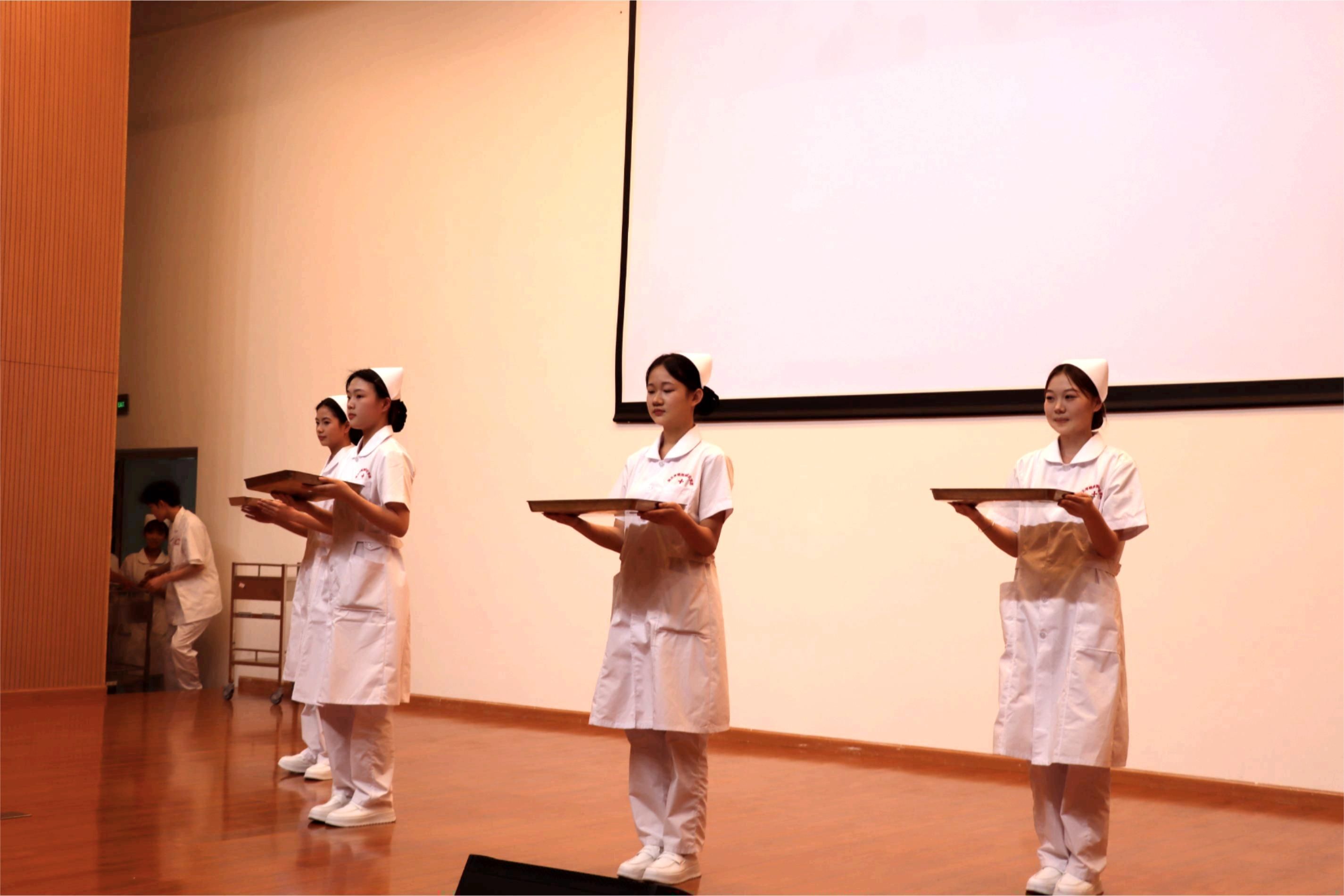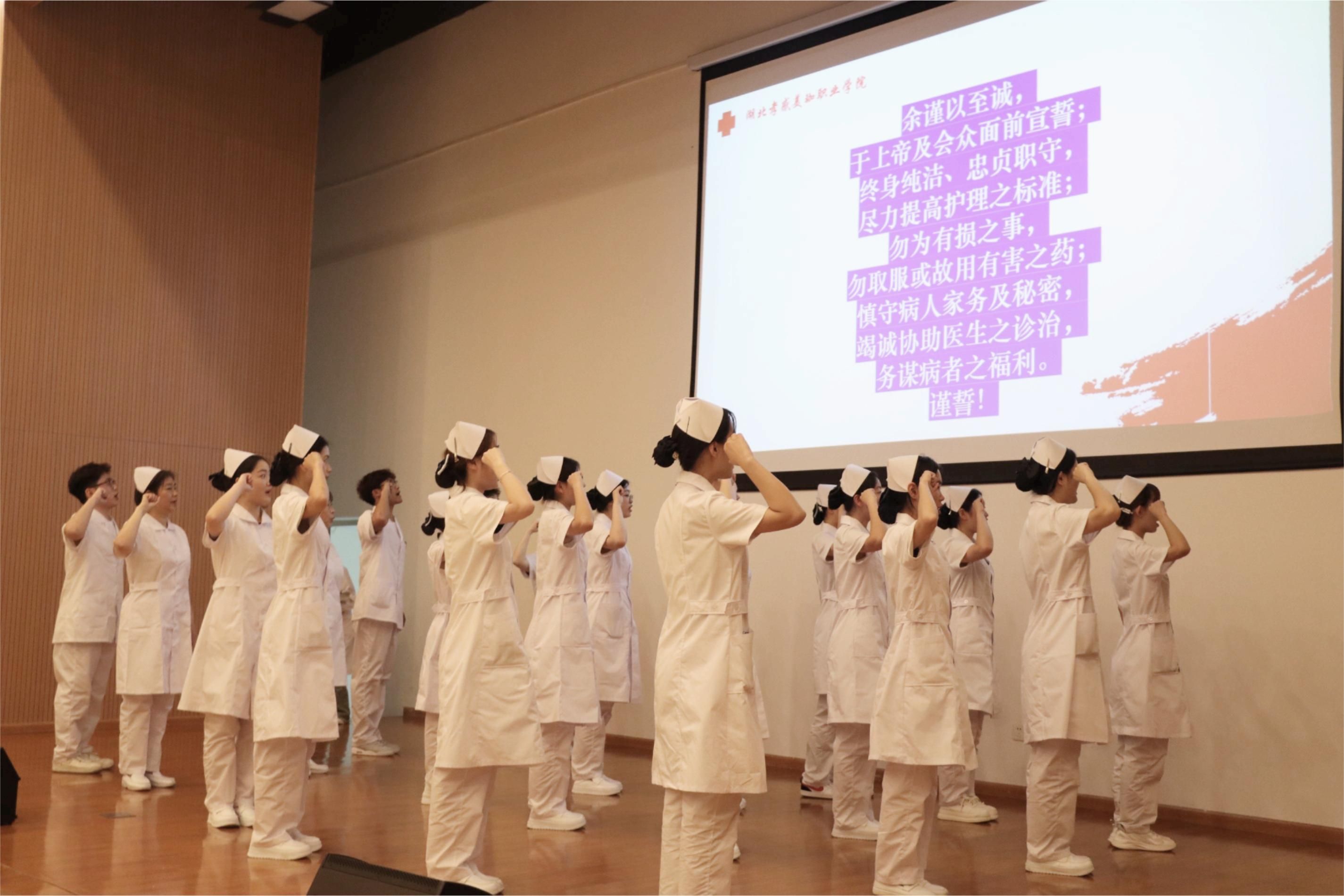 礼仪队展示后,杨玉梅、刘世华、钟玉梅副教授和吴媛媛老师为护理系学生进行了授帽仪式,并全场面向南丁格尔誓言宣誓,在誓词中再次感受护理职业的初心和使命。