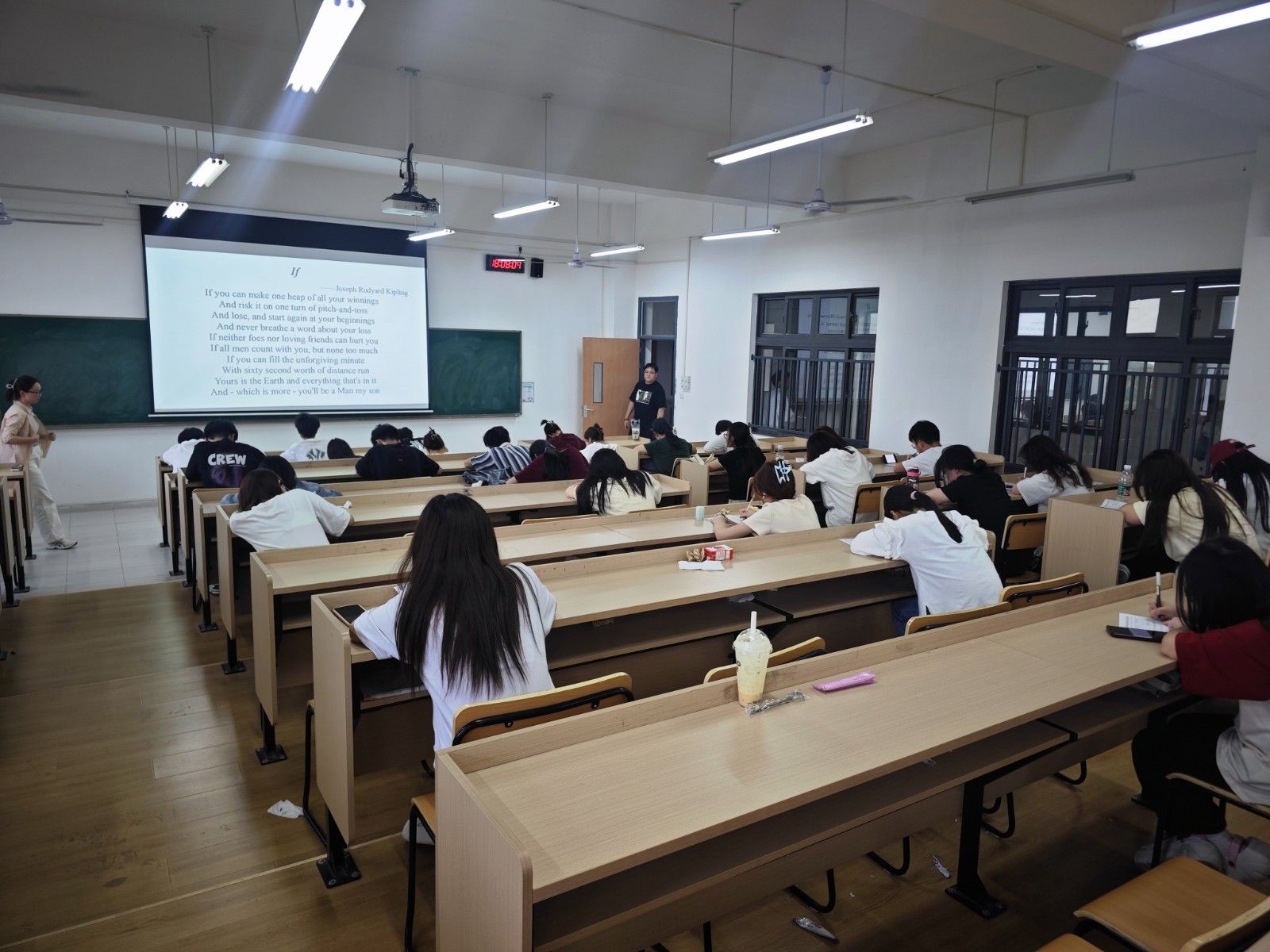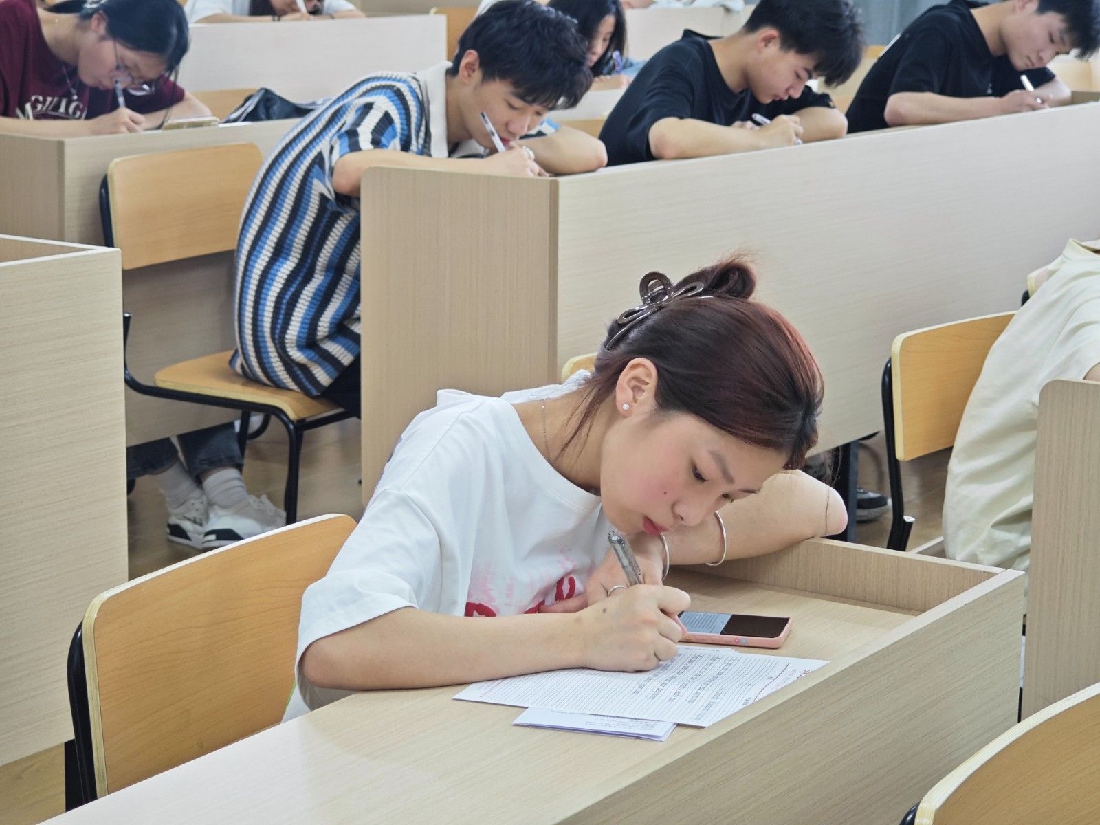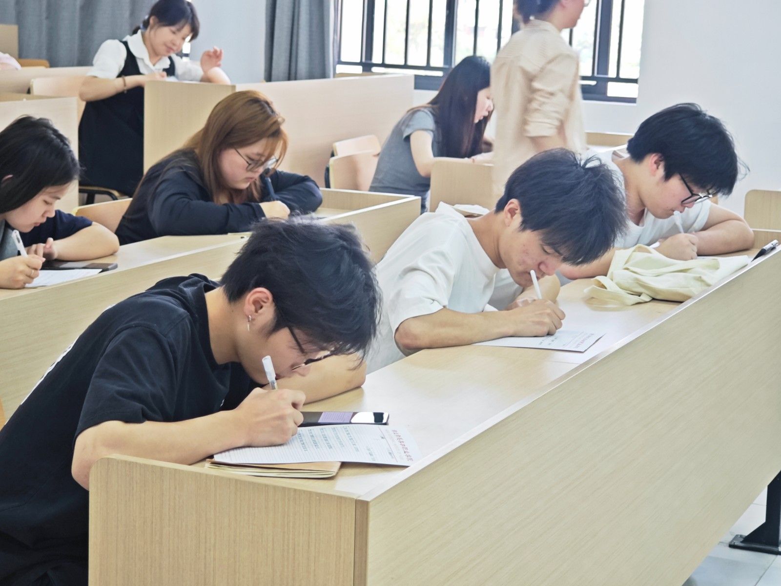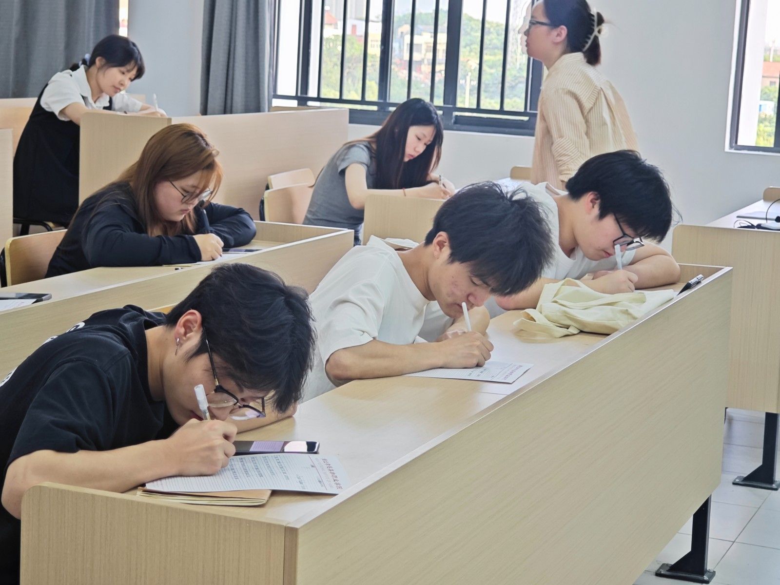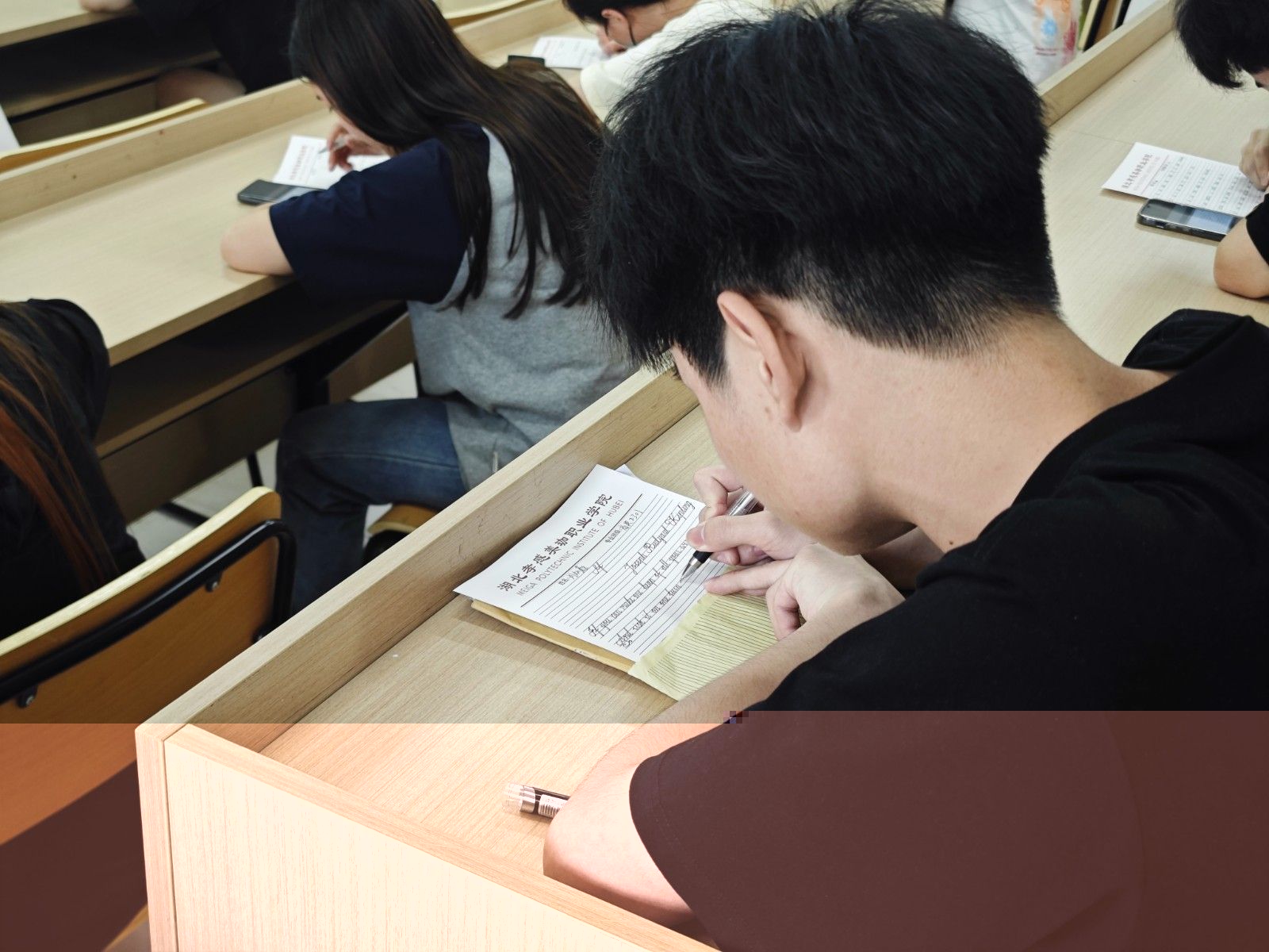 本次比赛要求书写卷面整洁美观,字母、单词、句子书写规范、对标点符号、字间距行间距等都提出了具体的要求。比赛过程中,所有师生全神贯注,用心执笔,字母横平竖直,圆润饱满,一心一意写好字,尽善尽美绽芳华,并按教师要求做好书面排版。考员监督学生参赛公平、公正、公开,并为学生提供应有的帮助。