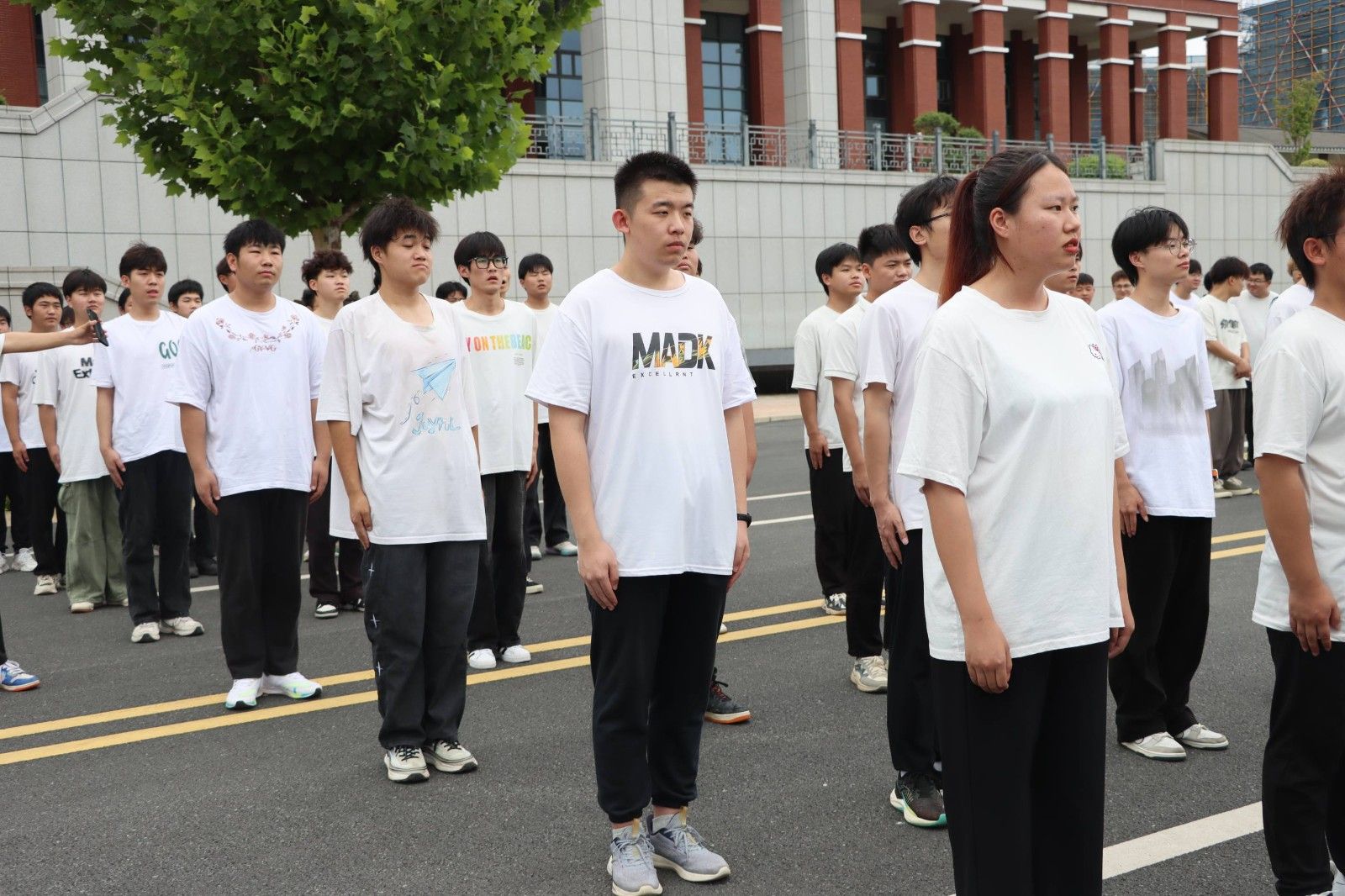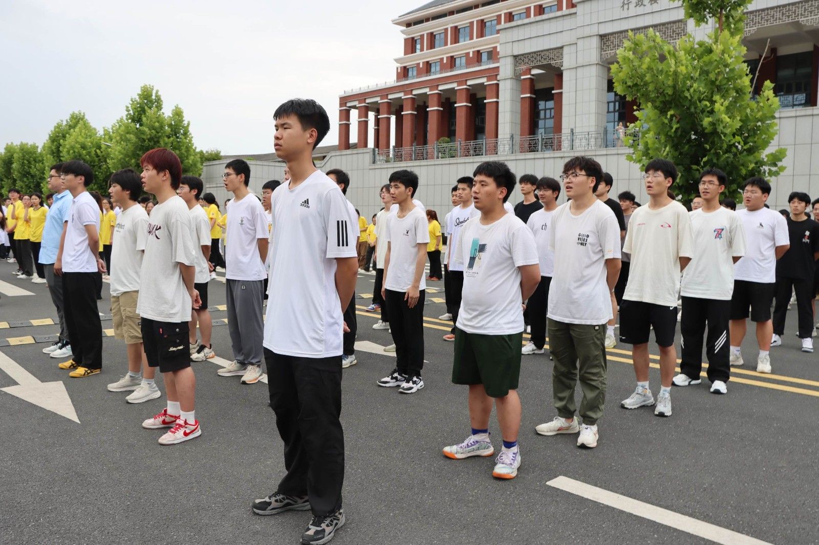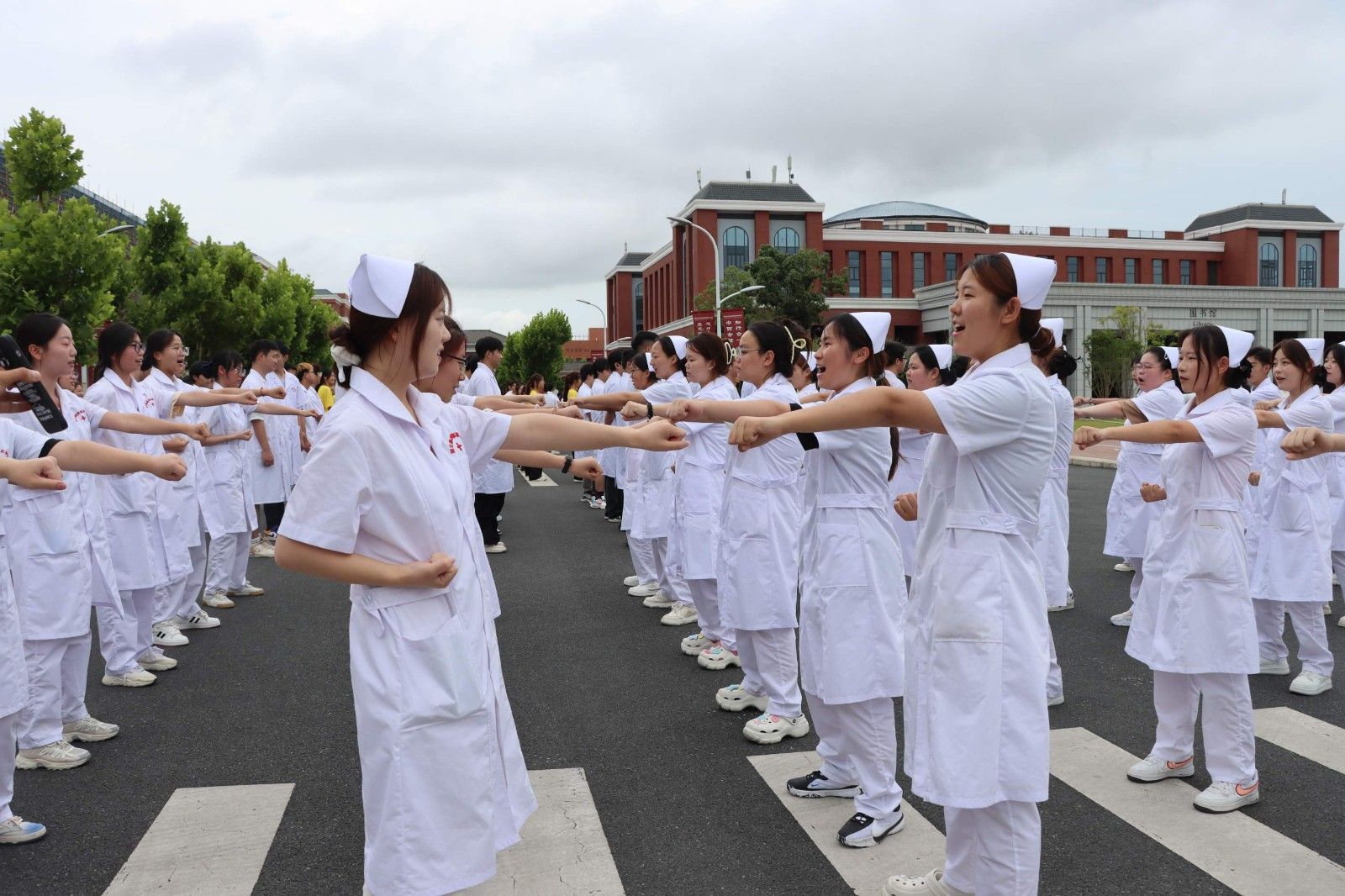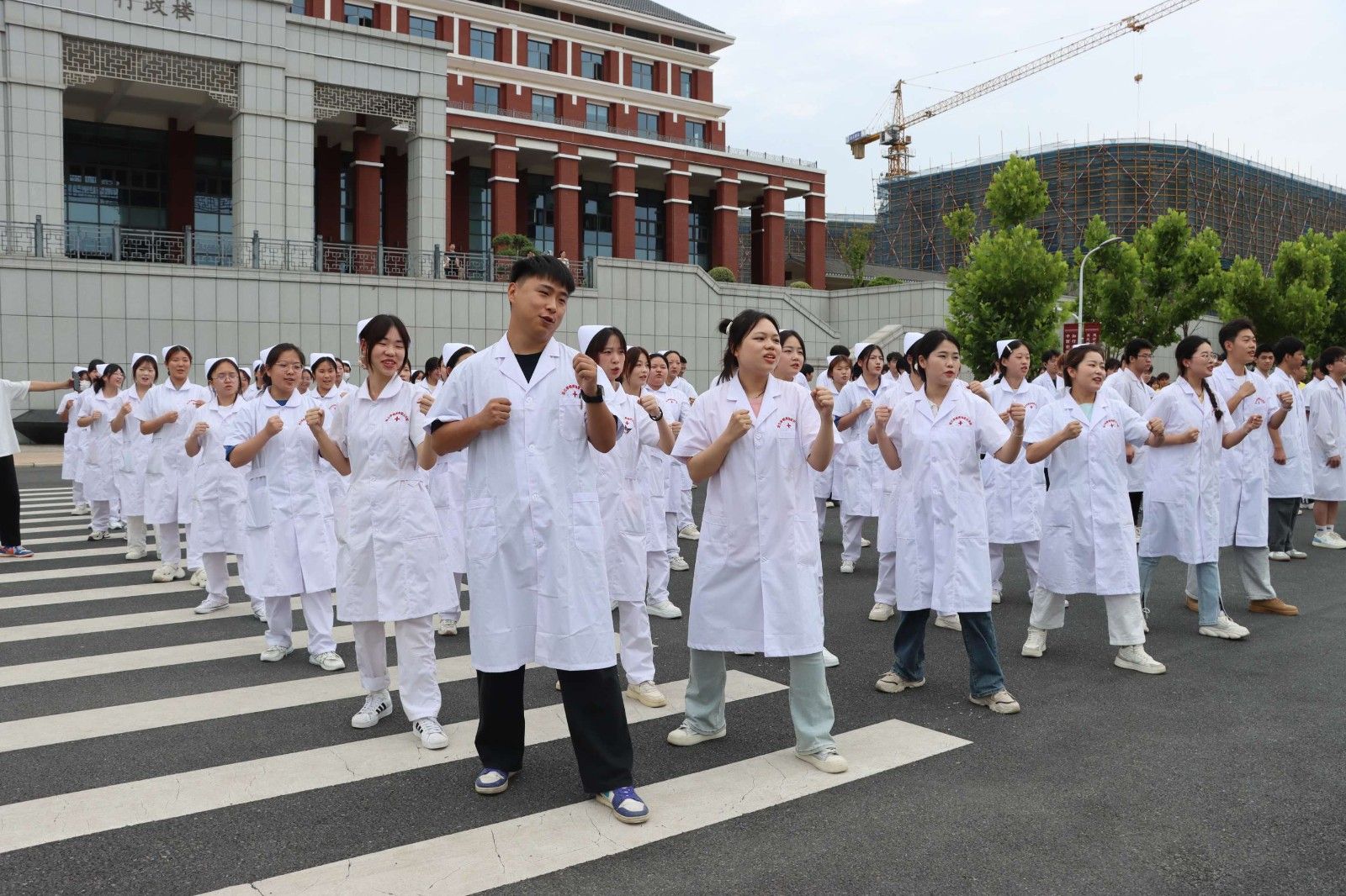 2024年6月19日下午5点,美珈职业学院行政楼前广场上人们热血沸腾。来自不同学院的同学们在这里集聚,他们准备在这个充满激情的“美珈杯”校级冲拳发声PK赛上展示自己的风采。这不仅是力量和技巧的较量,更是青春热血和拼搏精神的展现。