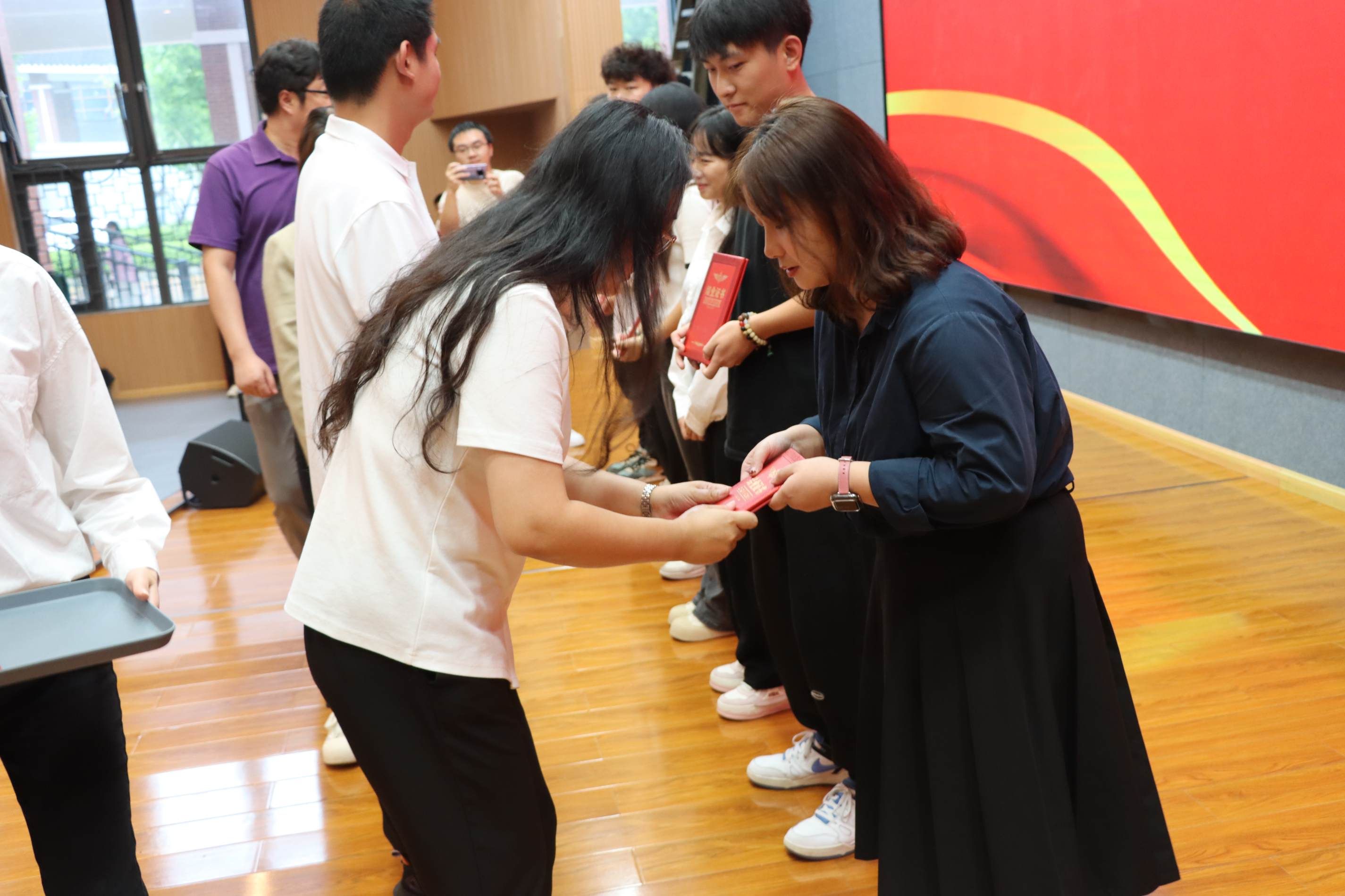典礼伊始,党务工作办公室科长邓蓓播放了一段精心制作的视频,带领大家回顾了党校第三期入党培训班的学习历程。视频中,入党积极分子们在课堂上认真听讲、积极参与讨论,在课外活动中团结互助、共同进步的画面一一展现,更有学员在镜头前分享了自己在培训班期间的学习心得,展现了他们坚定的信念和昂扬的斗志。