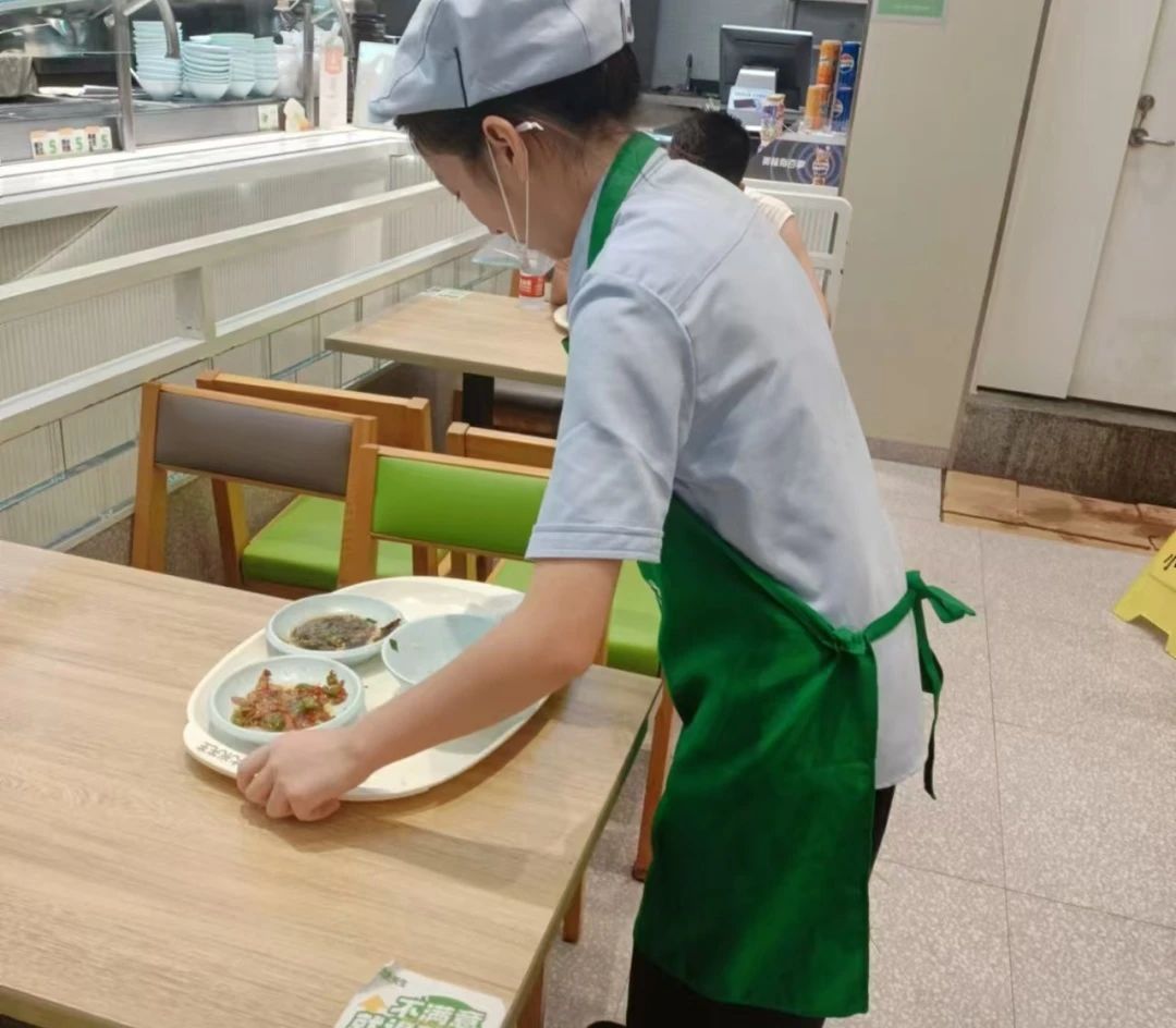 我7月11号在武汉一家“大米先生”店里做兼职服务员,每天就负责收盘子、擦桌子,帮助客人点餐、收钱、及时补充物资等,如筷子勺子没了要及时放进去,纸巾没了也要及时补充,客人吃完了就要去及时收走盘子和垃圾,好让下一位客人有地方坐,下班前还有打扫卫生。拖地扫地之类的工资。在这些天的辛苦劳作中我体会了打工人的不易,但是到了发工资的时候还是很开心的,觉得自己的辛苦有得到回应。在这过程中我学习到了很多,坚持就会有很大的收获和体验。