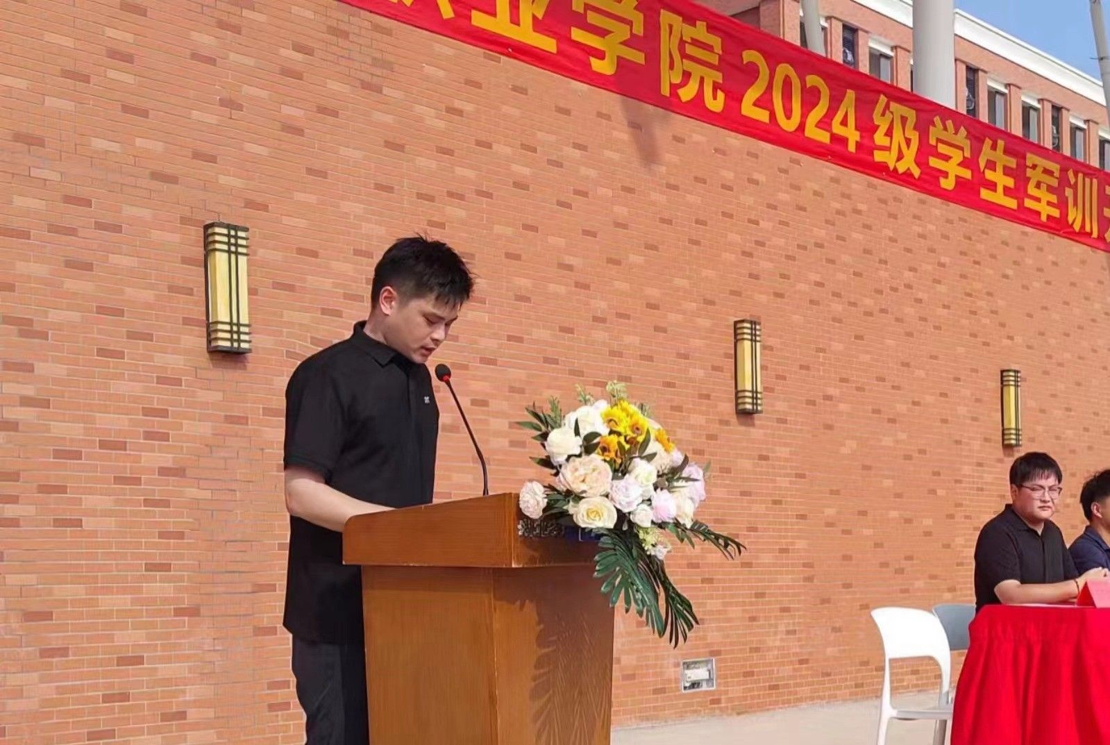 副校长徐国洪首先代表学校向2024级新同学表示热烈欢迎和诚挚问候,同时也向前来参训的领导和教官表示衷心感谢。