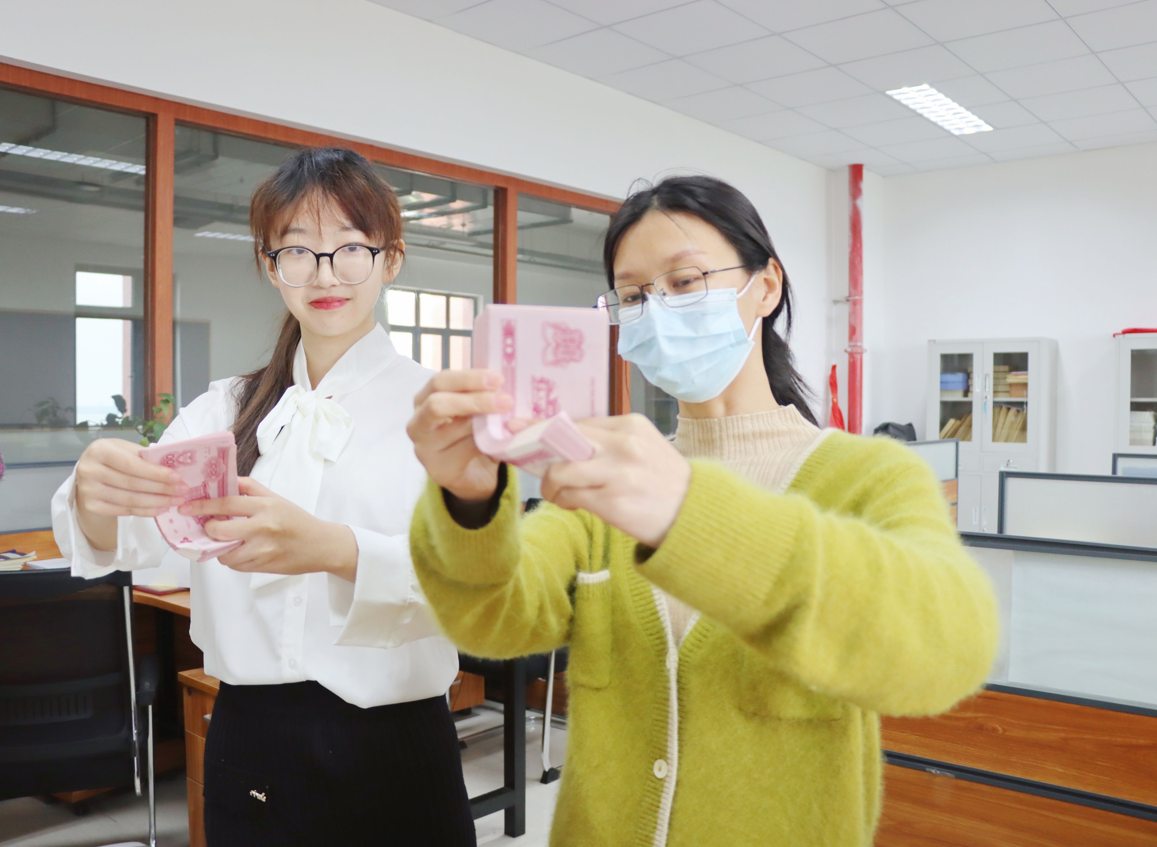 最近,叶紫轩同学和三位大二同学还在紧锣密鼓地准备“中银杯”省级职业技能竞赛,她说要永远当赶路人,没有任何成就是主动找上门的,想有好的发展就一定要自己积极地争取。