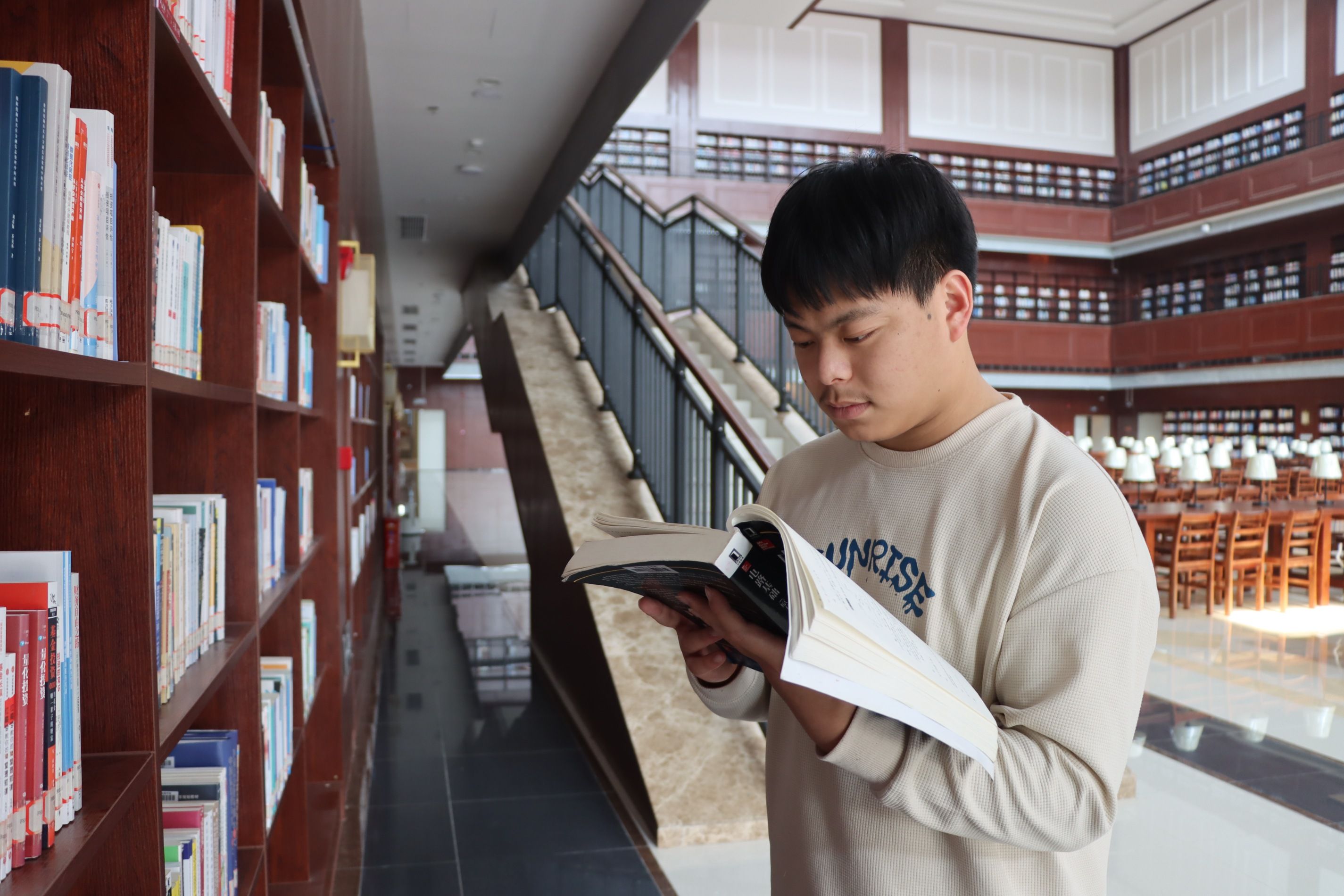 我几乎每天都会泡在图书馆,从早上6点半到晚上9点半结束,只要没有课,我基本上都会在图书馆。能够借阅这么多书籍,是因为我觉得我所学专业的课本满足不了我的日常学习所需,我需要更多的知识拓展。就好比学校所发的一种电路书,没有很多例题,我需要去通过一些其他书籍上的例题来进行一种自我提升。我们学校的图书馆真的很好,是我见过最棒的图书馆,有这么好的基础设施,学习起来也更有动力。