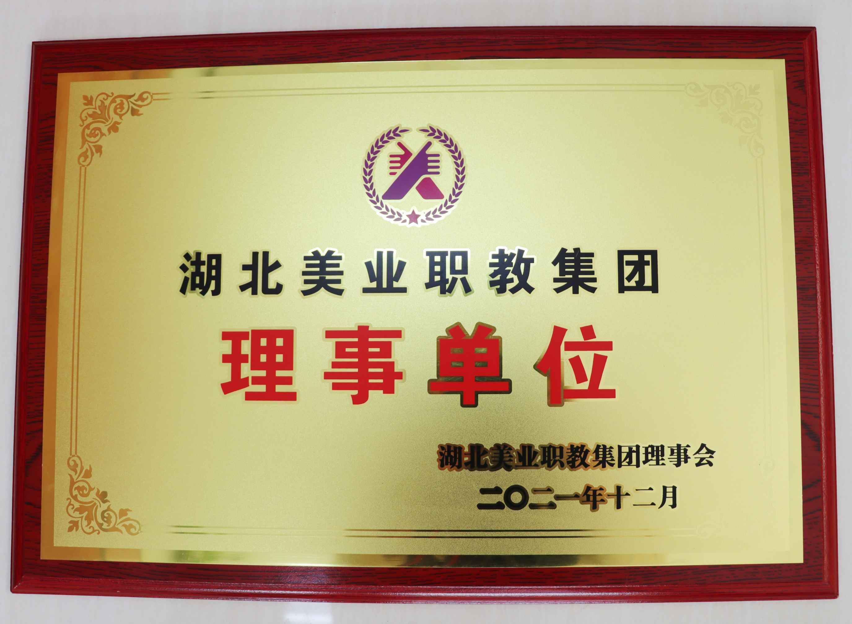 在近日召开的湖北美业职教集团年会上传来好消息:授予我校“湖北美业职教集团理事单位”牌匾;