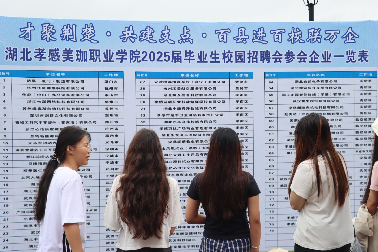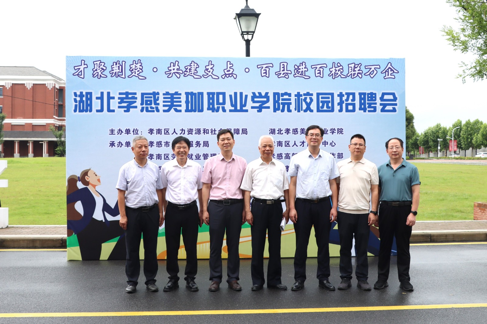 孝感市人才局局长陈晓军,孝南区人社局党组书记、局长易昕能,孝南区人社局党组成员、副局长徐红光等相关领导亲临现场,指导工作。学校校长陈再平、顾问徐国洪、校长助理袁晓洲,以及各学院负责人也莅临招聘会现场,与用人单位和毕业生深入交流,了解招聘情况。