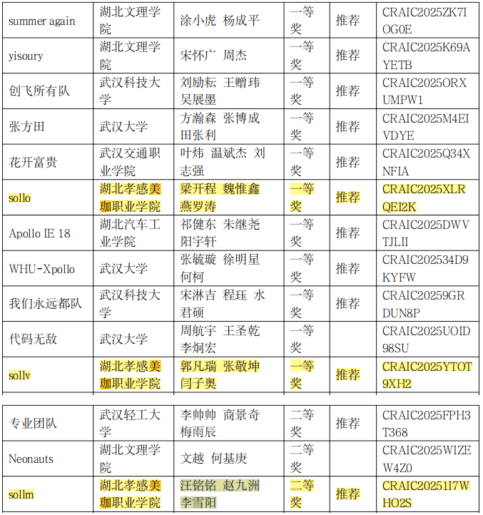 作为教育部认可的重要榜单赛事,本届Apollo星火赛项聚焦自动驾驶技术前沿,要求参赛团队基于百度Apollo提供的真实城市道路场景地图,在本地环境中开发、测试核心软件算法,最终通过ApolloStudio线上平台完成严苛评测。赛事高度模拟产业实践,是锤炼学生复杂系统开发能力和创新思维的重要平台。在李明、王豪两位指导老师的带领下,美珈职院智能制造学院三支队伍迎难而上:梁开程、魏惟鑫、燕罗涛小组凭借算法设计的精准与高效,取得满分600分,勇夺省级一等奖;郭凡瑞、张敬坤、闫子奥小组同样以卓越表现摘得省级一等奖桂冠;汪铭铭、赵九洲、李雪阳小组稳扎稳打,荣获省级二等奖。