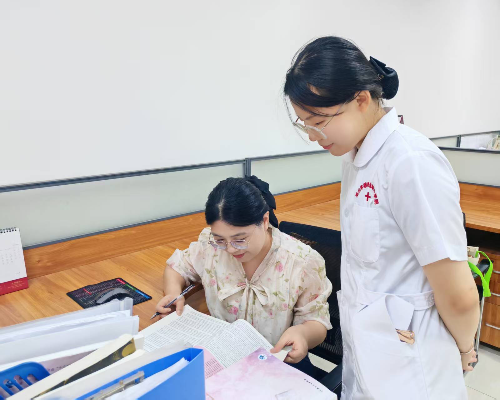 在王珊老师的课堂上,“学生是主角”从不是一句空话。她研究高职学生认知特点,创设模拟医疗情境,将复杂的护理技能拆解为可操作的任务模块。“王老师总能用简单的例子讲透难点,比如用‘拼图游戏’类比护理流程的连贯性,让我们一下子就懂了。”学生们的反馈印证了课堂的高效。