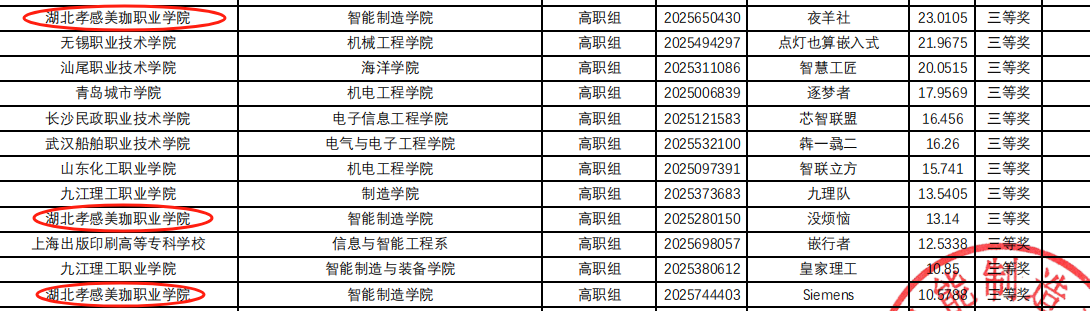 此次获奖,是学院在“中国制造2025”战略指引下,深入推进产教融合、重构课程体系、打造“项目—竞赛—科研”三位一体教学模式的又一里程碑;更是美珈职院“以赛促学、以技立身”育人理念的生动注脚。学院将以此次突破为新起点,持续以创新为引擎、以实践为舞台,引入企业真实产线场景,建设“智能工坊”开放基地,让更多青年学子在真实工业脉搏中锤炼本领,成长为引领未来智能制造浪潮的卓越工程师。