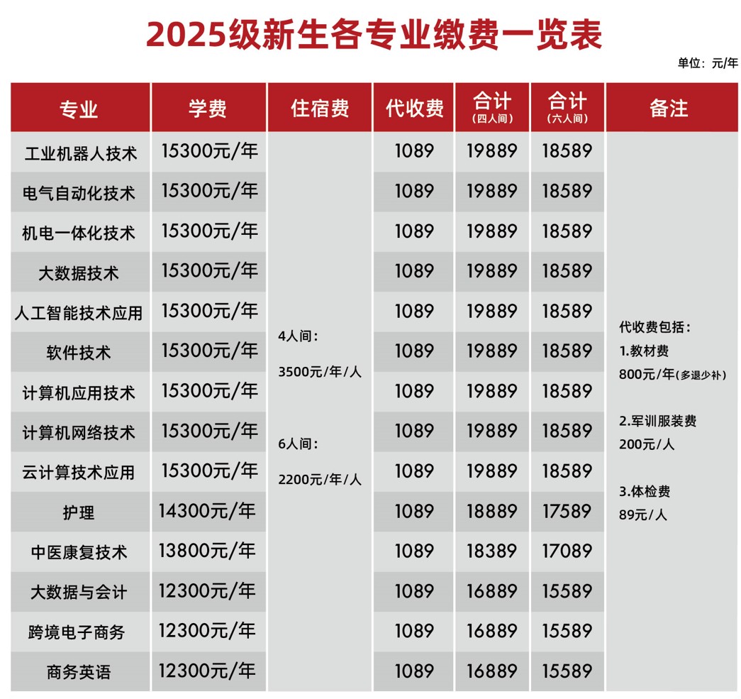 (一)学校实行按学年收费制度,收费款项在报到前一次性缴清。