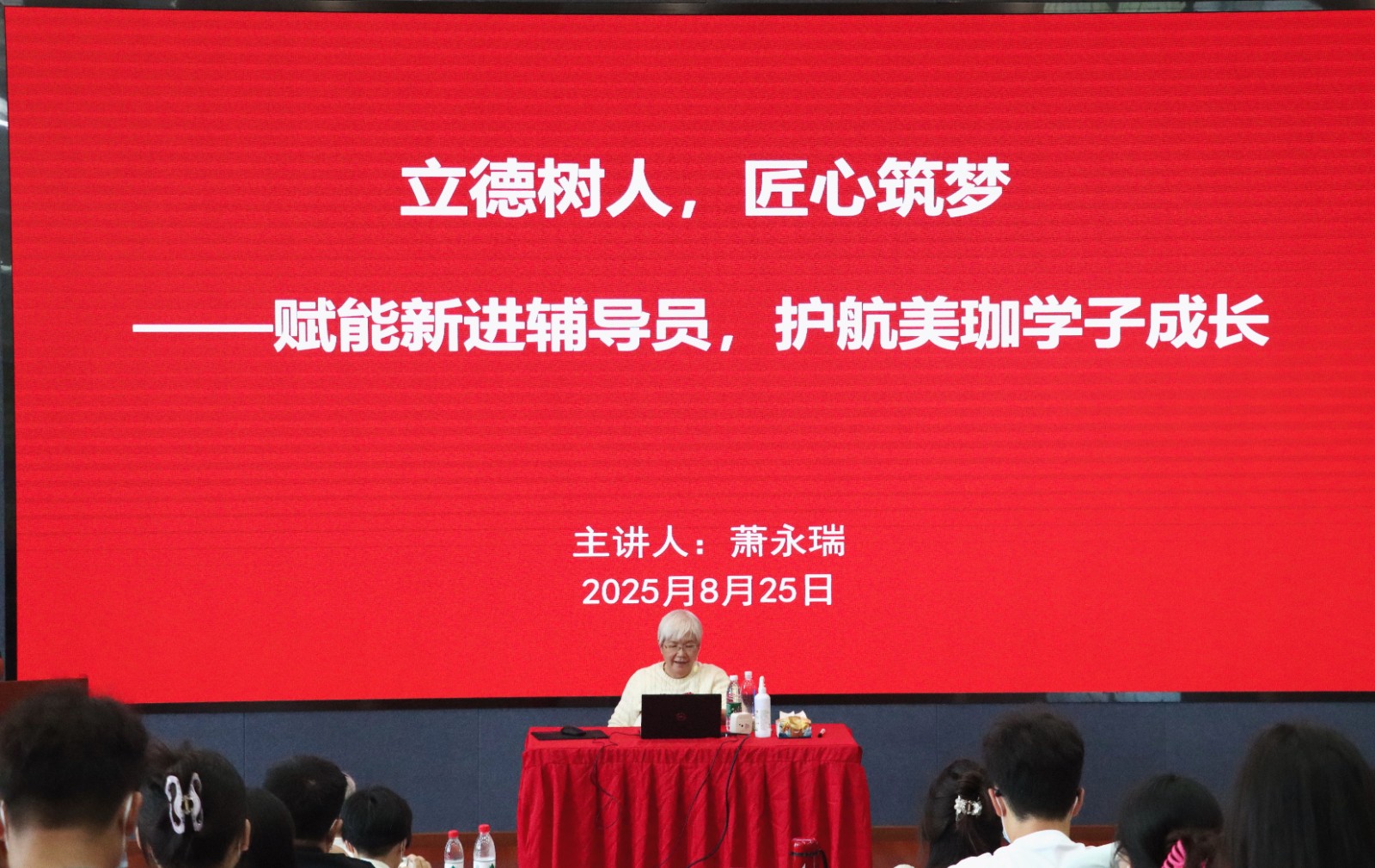 8月25日,我校为期两天的2025年新进辅导员培训班开班,本次培训以“立德树人,匠心筑梦——赋能新进辅导员,护航美珈学子成长”为主题。名誉校长萧永瑞女士以其深厚的教育情怀和坚定的育人信念,为全体2025年新生辅导员上了难忘的第一课。