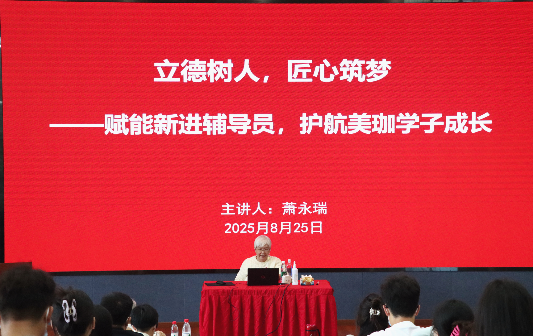 本次培训以“立德树人,匠心筑梦——赋能新进辅导员,护航美珈学子成长”为主题。名誉校长萧永瑞女士凭借深厚的教育情怀和坚定的育人信念,为全体2025年新进辅导员亲授第一课。